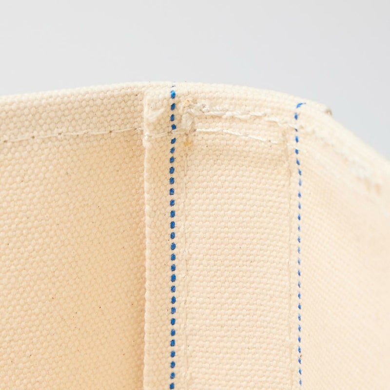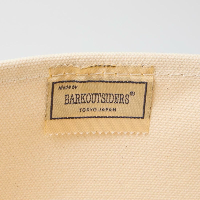 Barkoutsiders(バークアウトサイダーズ)のBLUE LINES TOTE 80's LARGE。国産の老舗キャンバスメーカーに特注した24ozパラフィン帆布を使用したキャンバストート。80年代のキャンバストート独特の雰囲気を日本の生産背景を活かして再現。狭幅のショートハンドル、サイドのブルーライン、現行よりボディの背が少し高かったフォルムなど細かい部分まで拘ったトート。スタイルを選ばないデザイン。経年変化も楽しみな逸品。