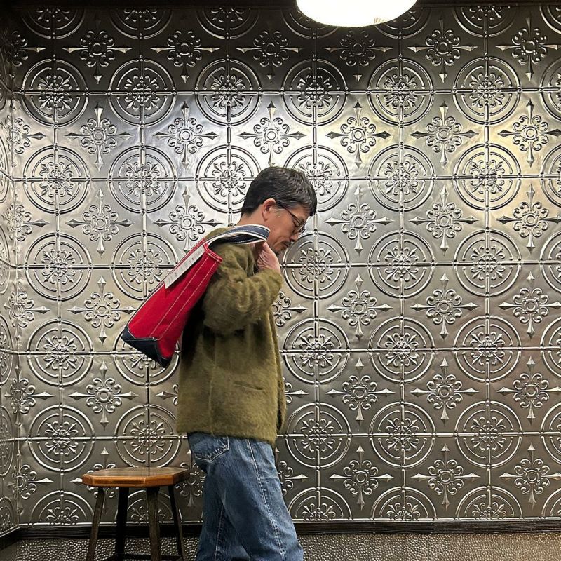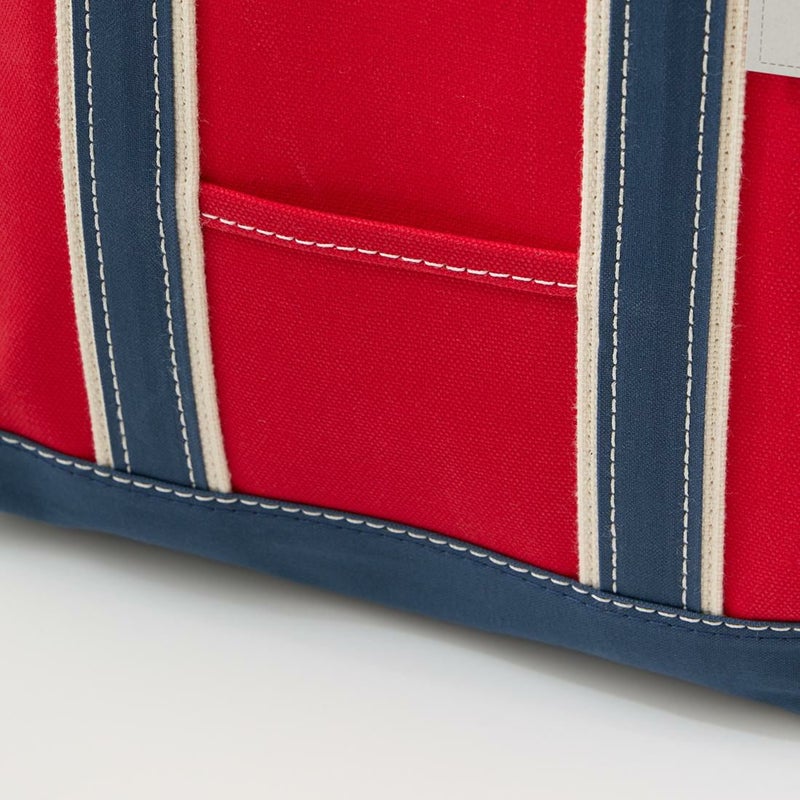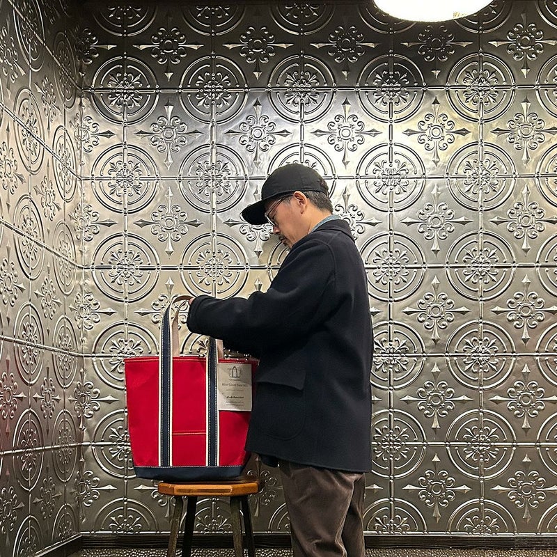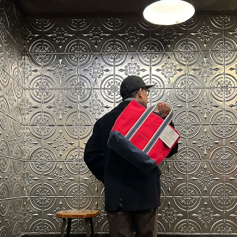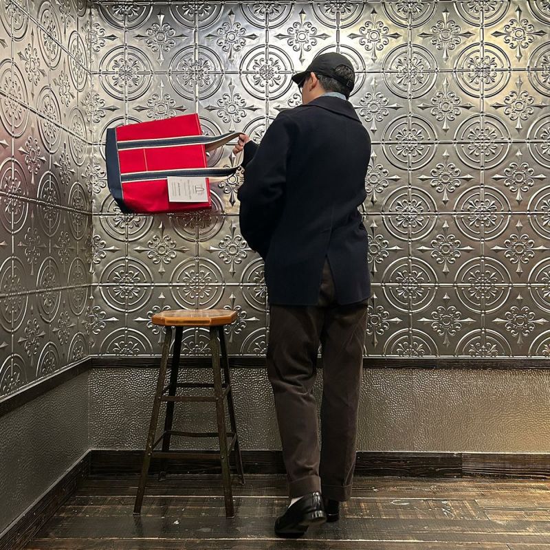 Barkoutsiders(バークアウトサイダーズ)のBLUE LINES TOTE 80's DX TALL LIMITED。80年代DXモデルの復刻版。耳付きシャトル織機で織られた別注ブルーラインキャンバスを使用したトートバック。80年代のキャンバストート独特の雰囲気を日本の生産背景を活かして再現。コットンテープを挟み込んだデラックス仕様。現存しない 4.5号帆布相当の特注高密度キャンバス。 80年代のTALLサイズを忠実に再現。総生産数が限定40個、店頭販売のみのスペシャルモデル。