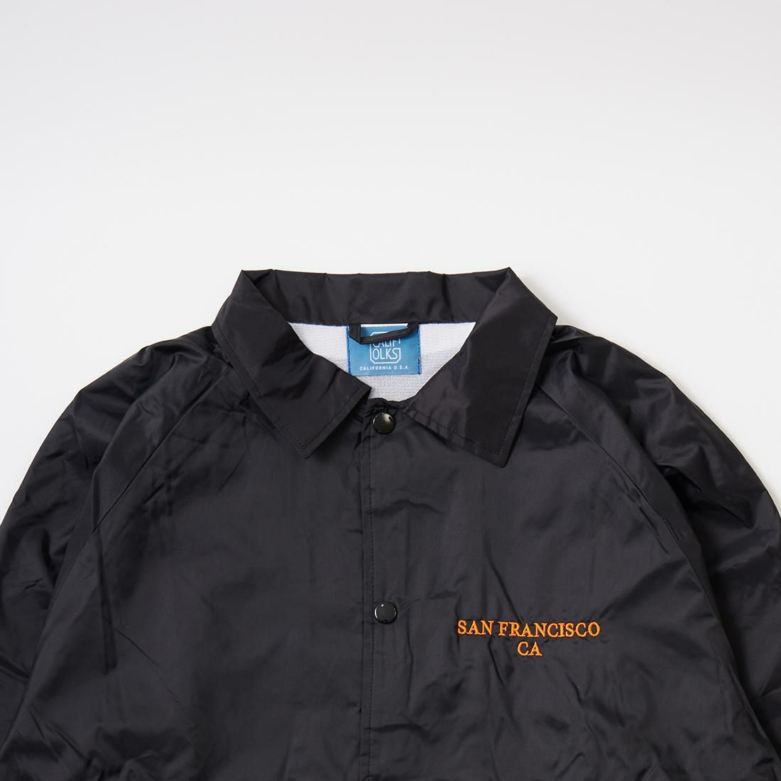 他の画像を見る サンプル品 コーチジャケット エンブロイダリー 【サンプル品 Lサイズ】CALIFOLKS (カリフォークス) SAMPLE COACH JACKET w/EMBROIDERY - BLACK SAN FRANCISCO EMB 通常販売価格 ¥ 16,500 の所 セール価格 ¥ 8,800 税込 お気に入りに登録する