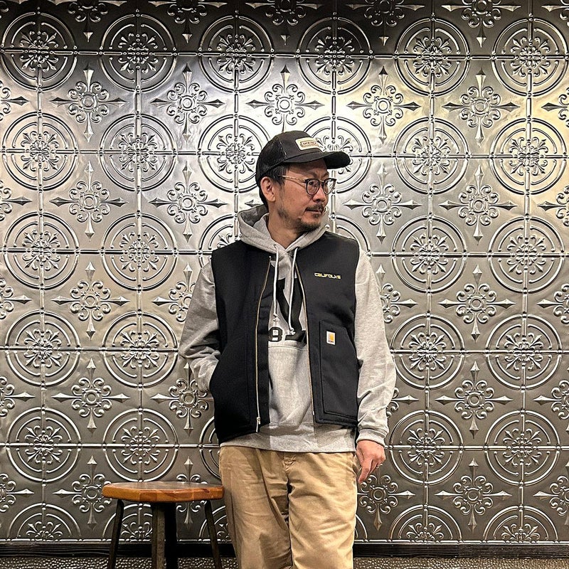 カリフォルニア発のブランドCALIFOLKS(カリフォークス)のCARHART USA DUCK VEST w/CALIFOLKS EMBROIDERY。アメリカ流通のカーハートのベストにカリフォークスの刺繍が施されたコラボレーションアイテム。リブの襟に前立てはジップフロント。腰の左右にパッチポケットを装備。強靭なダック素材。キルティングのライニングが付いており保温性も高い1着。