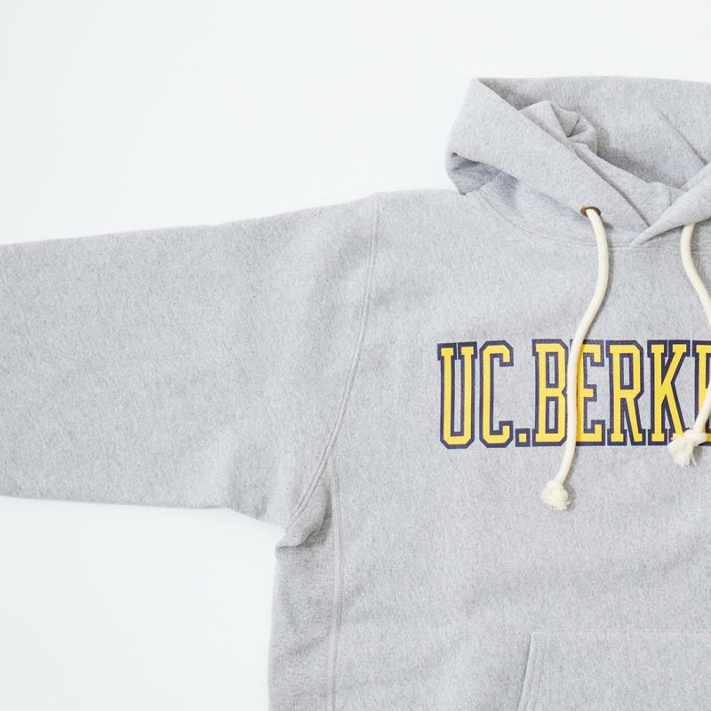 CHAMPION(チャンピオン)のREVERSE WEAVE HOODED SWEAT SHIRT U.C.BERKELEY。スウェットの原点であり名作のリバースウイーブのプルオーバースウェットパーカー。リバースウィーブとは生地を横使いすることで縦縮みを軽減し、脇にはリブを付けて横縮みも防止した仕様のこと。スウェットの弱点だった洗いによる縮みの問題を見事に解決したうえに、両脇のサイドアクション・リブにより動きやすさもプラスされています。襟ネームのタグには1970年代モデルの「赤単タグ」(赤単色タグ)を採用。肉厚の生地が着込む程に馴染み長く愛用して頂けるスウェットパーカー。こちらはカリフォルニア大学バークレー校のカレッジロゴがプリントされた1着。