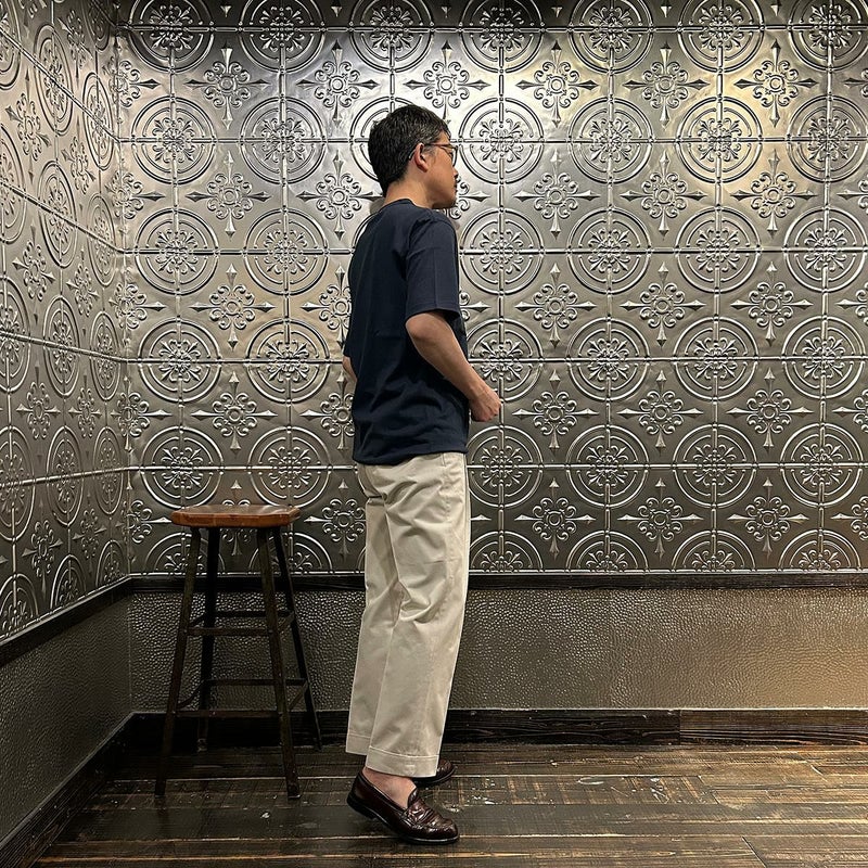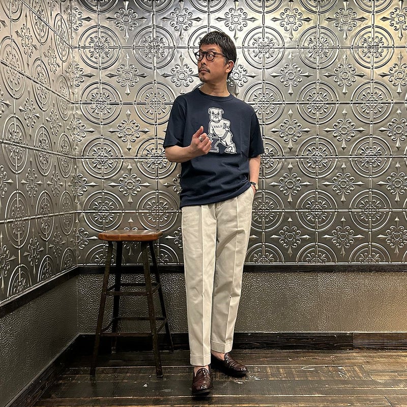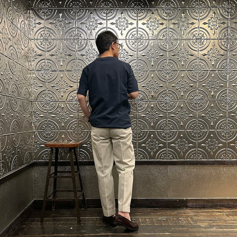 170センチ68キロで「M」サイズでゆったり目のサイズです。夏のワードロープには欠かすことのできないアイテム。色違い、デザイン違いで買い揃えたくなるT1011のカレッジシリーズ。今も変わらないアメリカ製。様々なスタイリングで楽しめる使い勝手の良い1着。ホント便利なTシャツです。