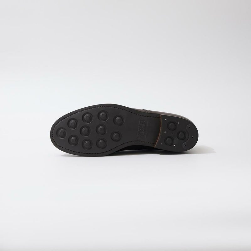 イギリス発「CROCKET&JONES(クロケットアンドジョーンズ)」のMIDHURST 4 Single Dainite Sole。ぽってりとした膨らみを持たせたラウンドトゥや懐古的なフォルムが特徴的なデザインのプレーントゥシューズ。ラストはつま先周辺を含む前方のフォルムはミリタリーラスト210をそのまま踏襲し、ヒールカップ(踵部)をややタイトに絞って踵のフィットを向上させた2024年リリースの【ラスト394】を採用。長時間履いても疲れにくい履き易さです。ソールは英国 Harboro Rubber Company のダイナイトスタッズソール。歩き易く、耐久性にも優れた仕様。素材はオイルを含ませることでしなやかさと耐水性を持たせたワックスカーフを使用。汚れや小雨程度の天候にも気にせず履ける点も魅力的です。様々なシーンやスタイルにも合わせられる汎用性に優れた1足。
