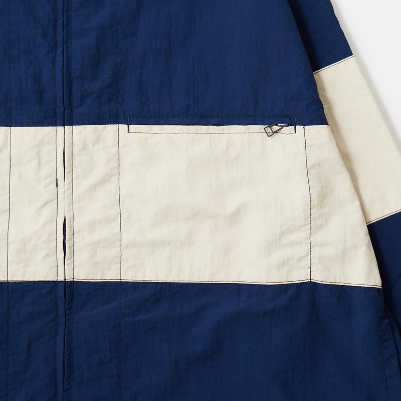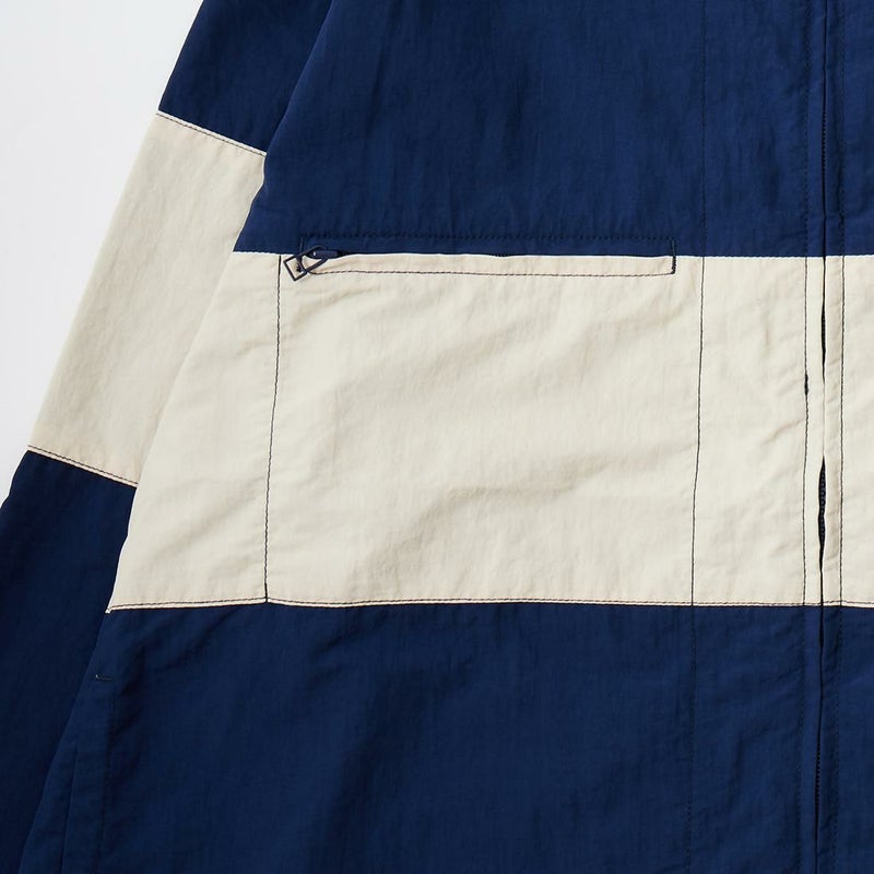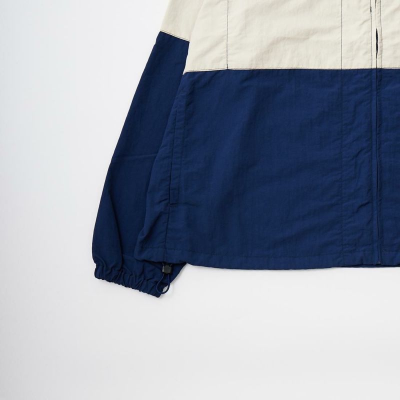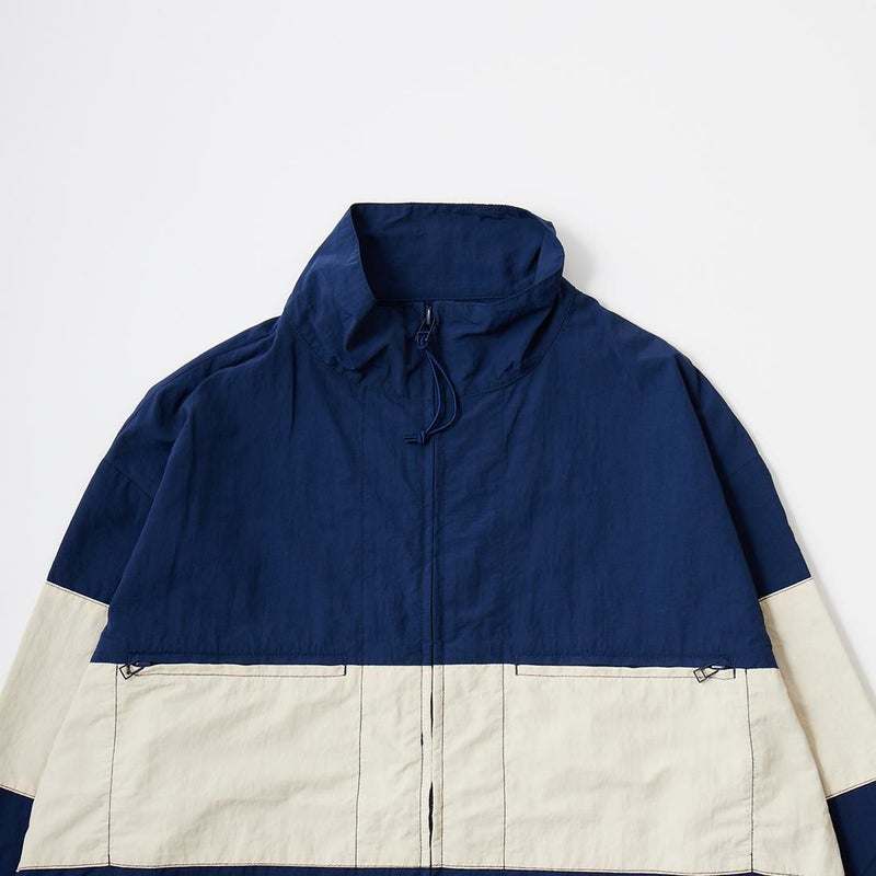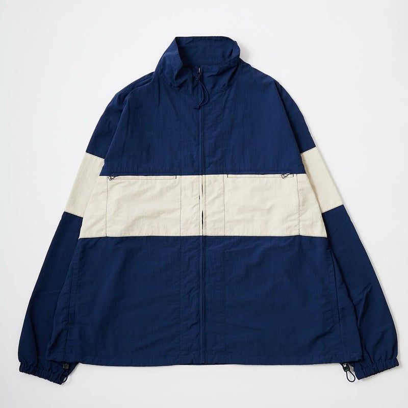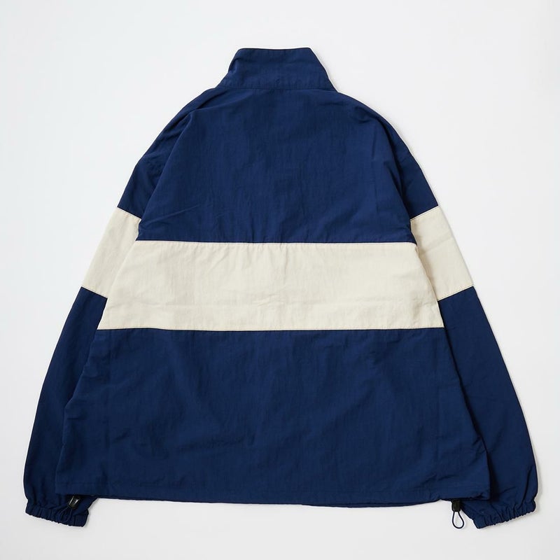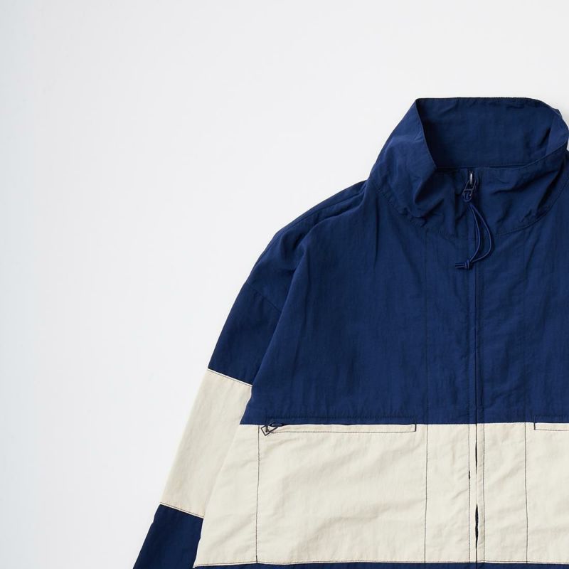 D.C. WHITE(ディーシーホワイト)のIVY LEAGUERS TRAINING TOP NYLON。『テイクアイビー』で撮られた60年代のアイビーリーガーらが着用していたナイロンジャケットがデザインソースのスポーティなジャケット。軽量なナイロンクロスを使用。太いボーダーとクラシックなカラーコンビが特徴。1枚での着用は勿論ですがインナーでの着用も可能な汎用性の高い1着。裾にはドローコードを装備。シルエットをアレンジして楽しんで頂けます。ジップの開閉による襟のアレンジも楽しみな一枚。