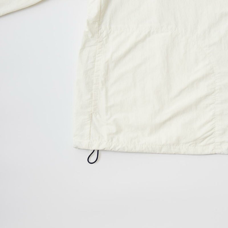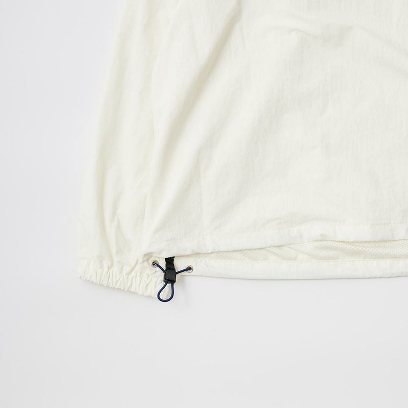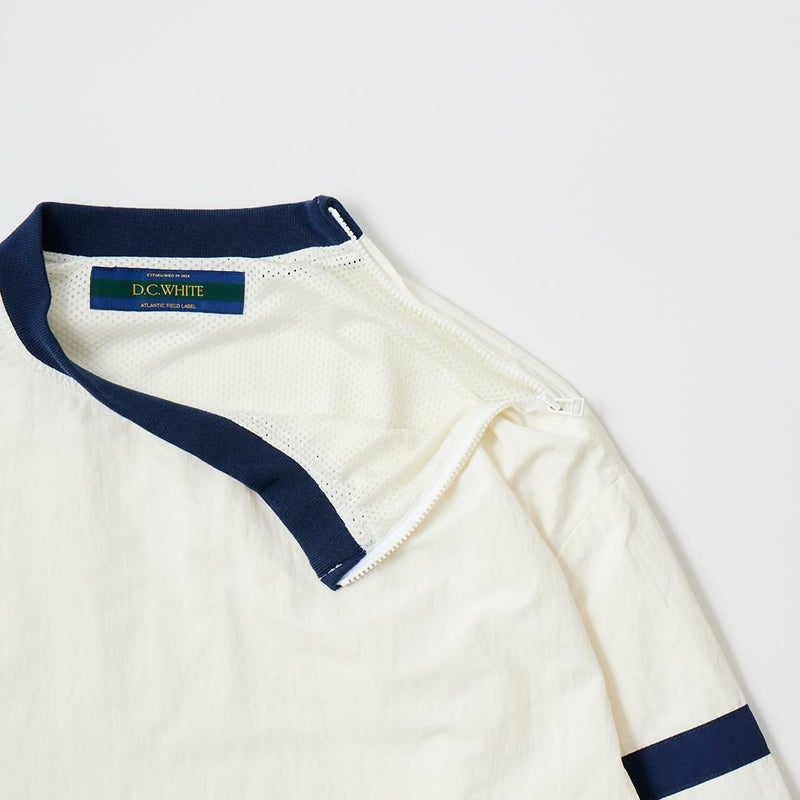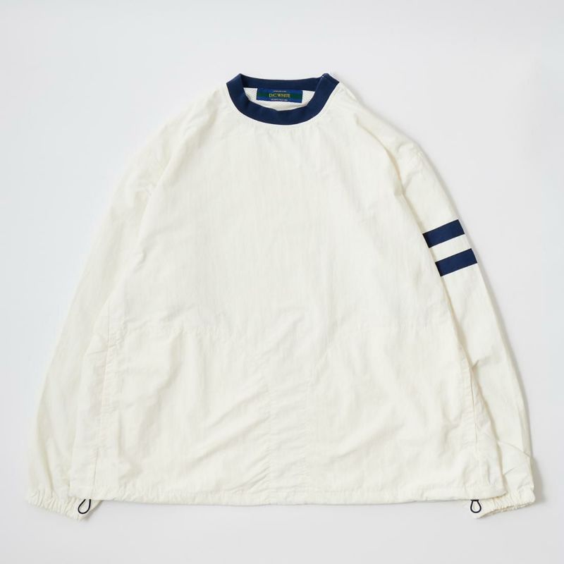 D.C. WHITE(ディーシーホワイト)のTRAINING SHIRT。ナイロン素材を使用したトレーニングシャツ。クルーネックの襟元やプルオーバー、左右のハンドポケットが特徴的なディテール。着脱が楽になるように首から肩にかけジップを配置。左袖の2本ラインがスポーティーで良いアクセント。裾にドローコードを装備。シルエットアレンジが可能。裏地はメッシュ仕様で通気性が良く着易い一枚。