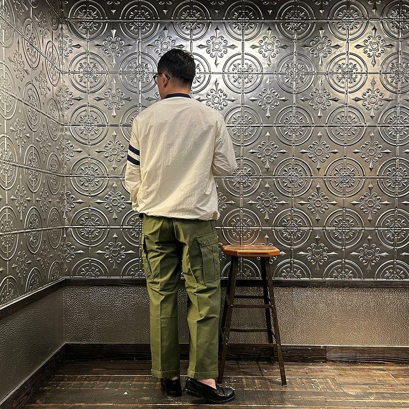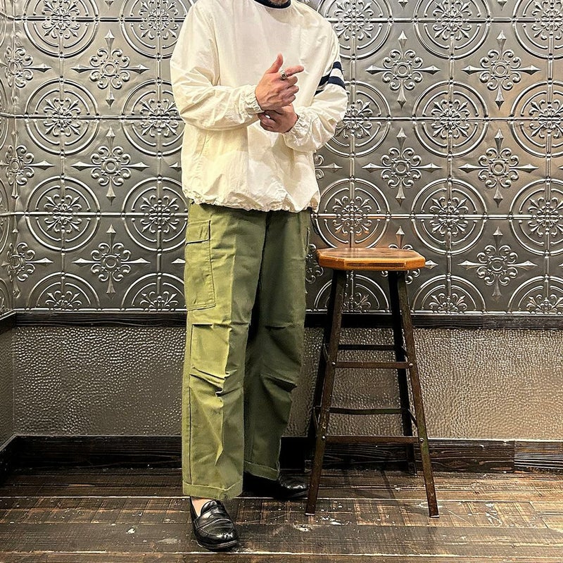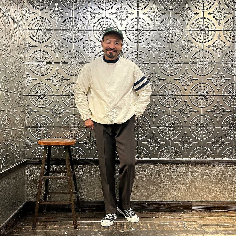 170センチ68キロの私の体型でサイズ選びはMサイズで個人的には丁度良い着用感です。ゆったりとしたサイズ感のつくりから私の体型でもSサイズは着れるんですが、中に様々なアイテムを重ねて着たり、好みのパンツのシルエットから考えるとMサイズのほうが良いと思いましたね。アメカジ、スポーツスタイル好きな方にはオススメしたくなるアイテム。単体で着た時の雰囲気の良さ。寒い時期であればインナー使いとしても大活躍。それに私の場合ゴルフウェアとしても着れそうですからね。そういう意味では間違いなく重宝できる1着ですね。