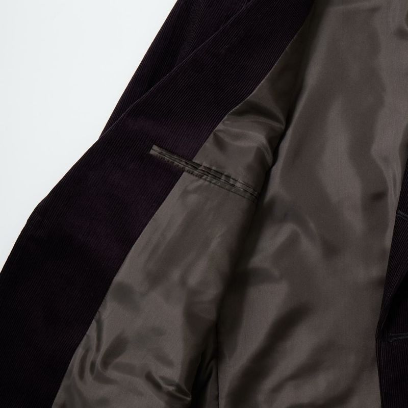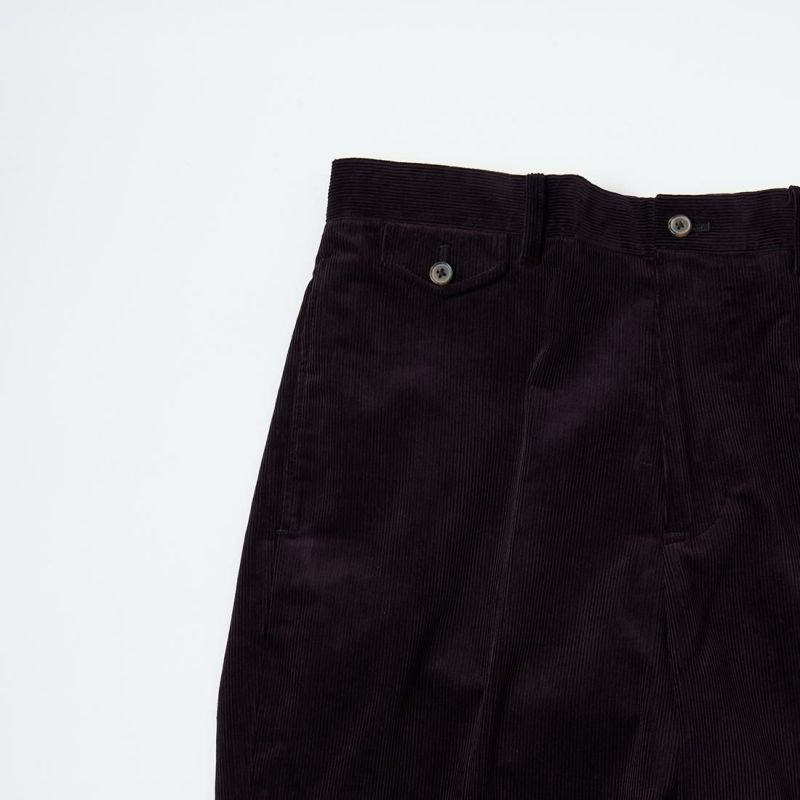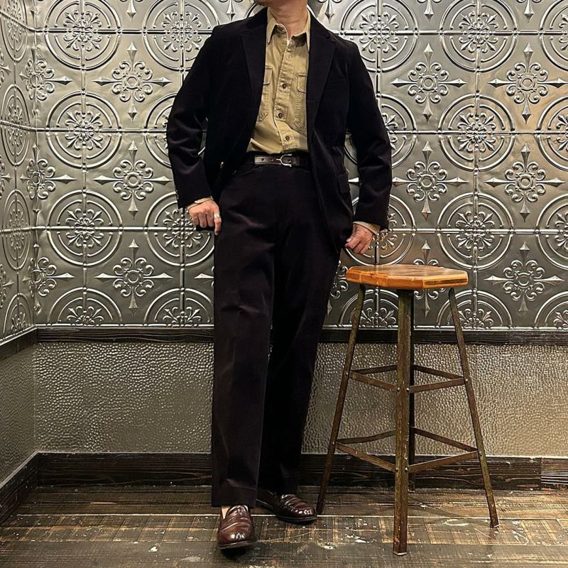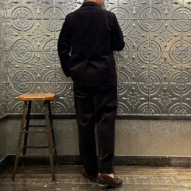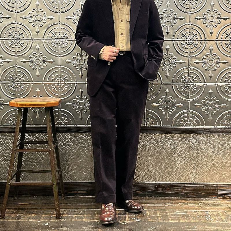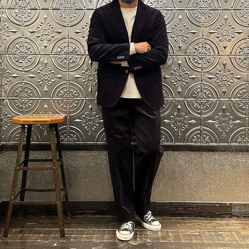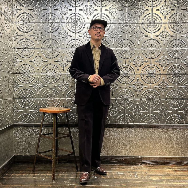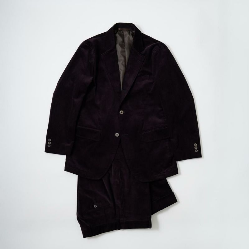国内ブランドD.C. WHITE(ディーシーホワイト)のBOSTON CORDUROY SUITS。アメリカントラッドの源流から現在に至るまで、その変遷を理解しつつ現代的なコーデュロイスーツへと昇華させたBOSTON。日本の老舗クロージング工場で縫製。立体的なパターンによる成型、前肩に回った袖付け、裁腹のパーツを活かした前身の立体感など、細部にまで感じるこだわり。特筆すべきは肩から首回りにかけ吸い付くようにカーブを描く立ちの良い襟。これにより腕、胸回りの着用時の快適さと品格ある佇まいを両立。シルエットは1980年代後半の日本のアメリカンカジュアルをイメージ。ボトムにわずかなゆとりを持たせ、ジャケットは襟ののぼりからナチュラルショルダーへと繋がるAラインシルエット。イタリアの名門"DUCA VISCONTI"が誇る12ウェールのコーデュロイを採用。繊細な畝と美しい仕上がり、そして何よりも絶妙な色彩で目を引く素材です。