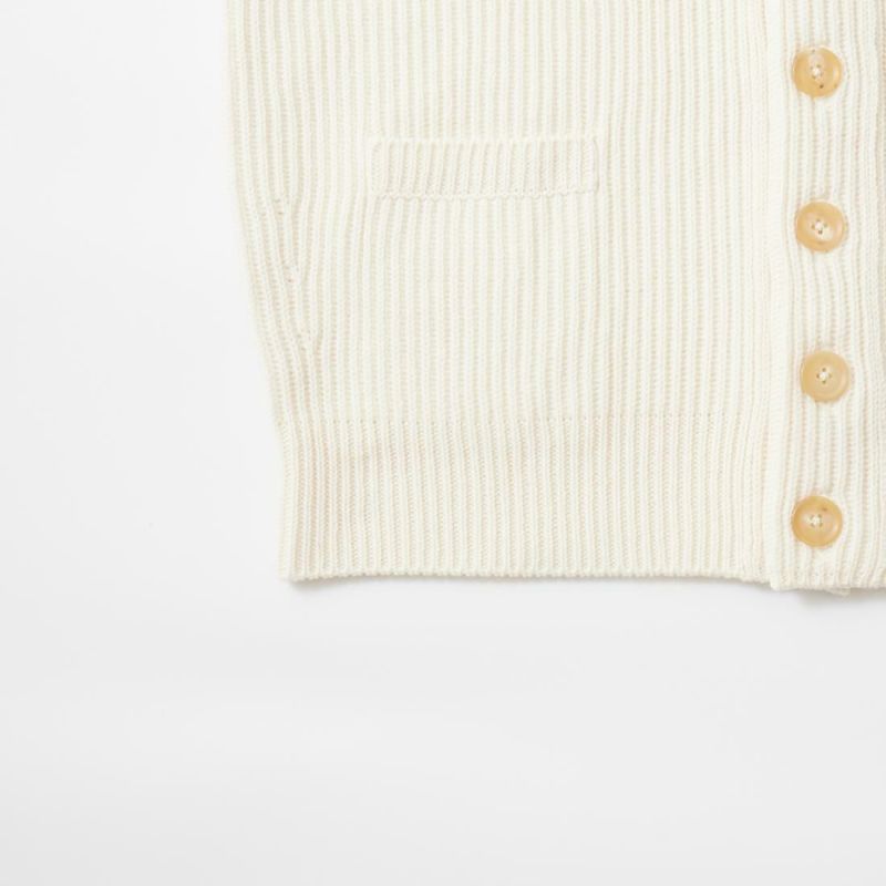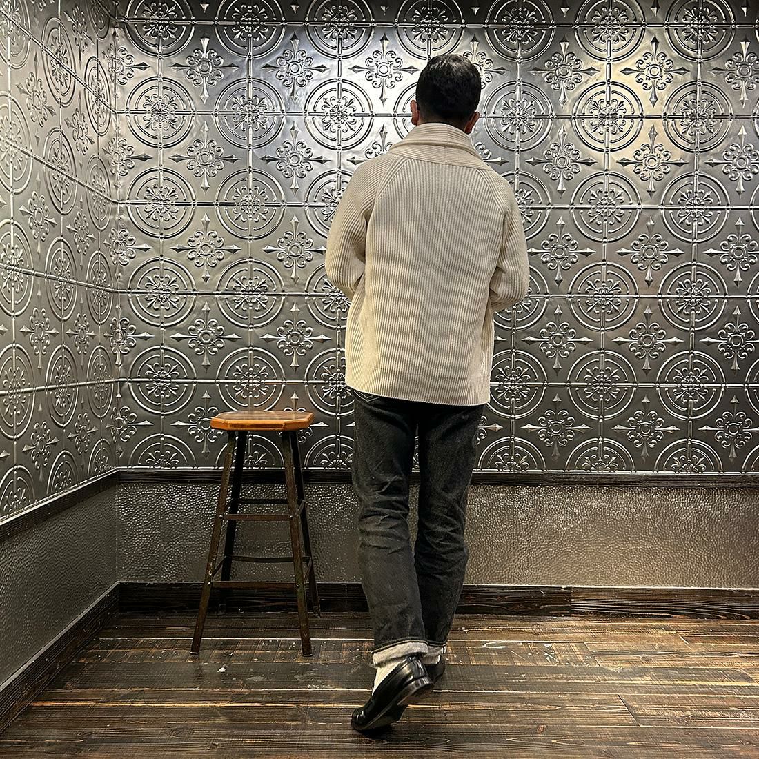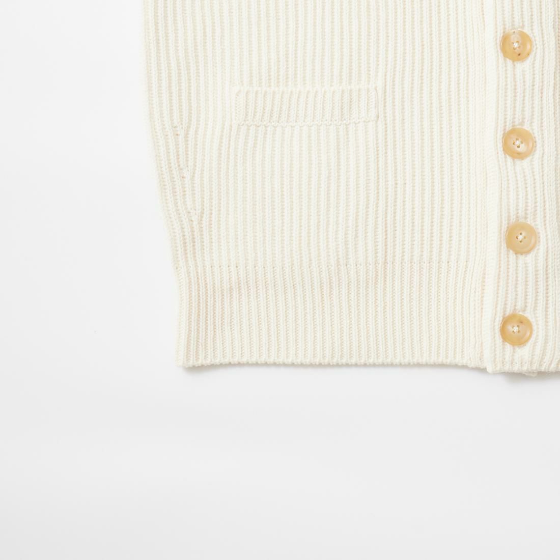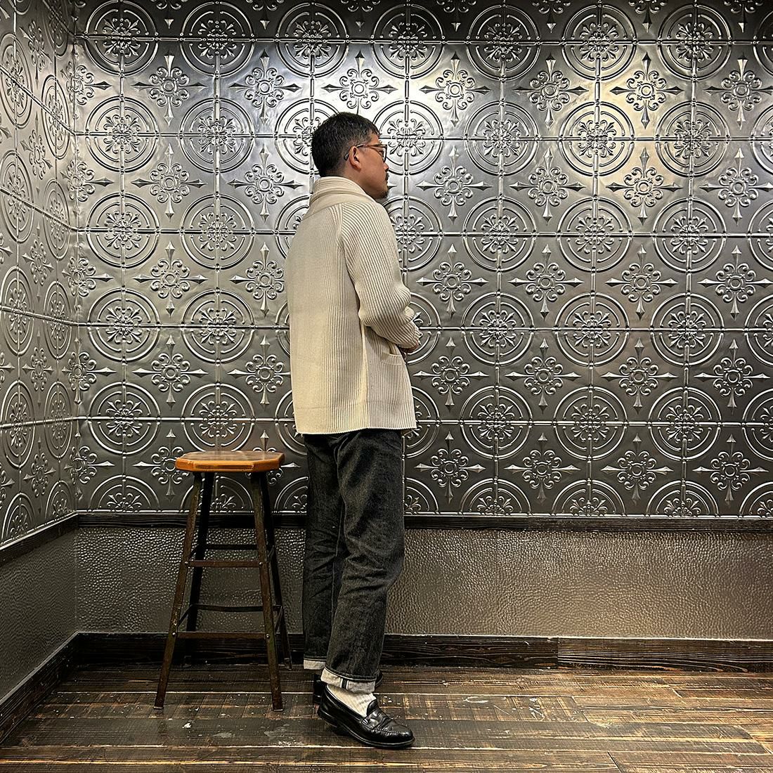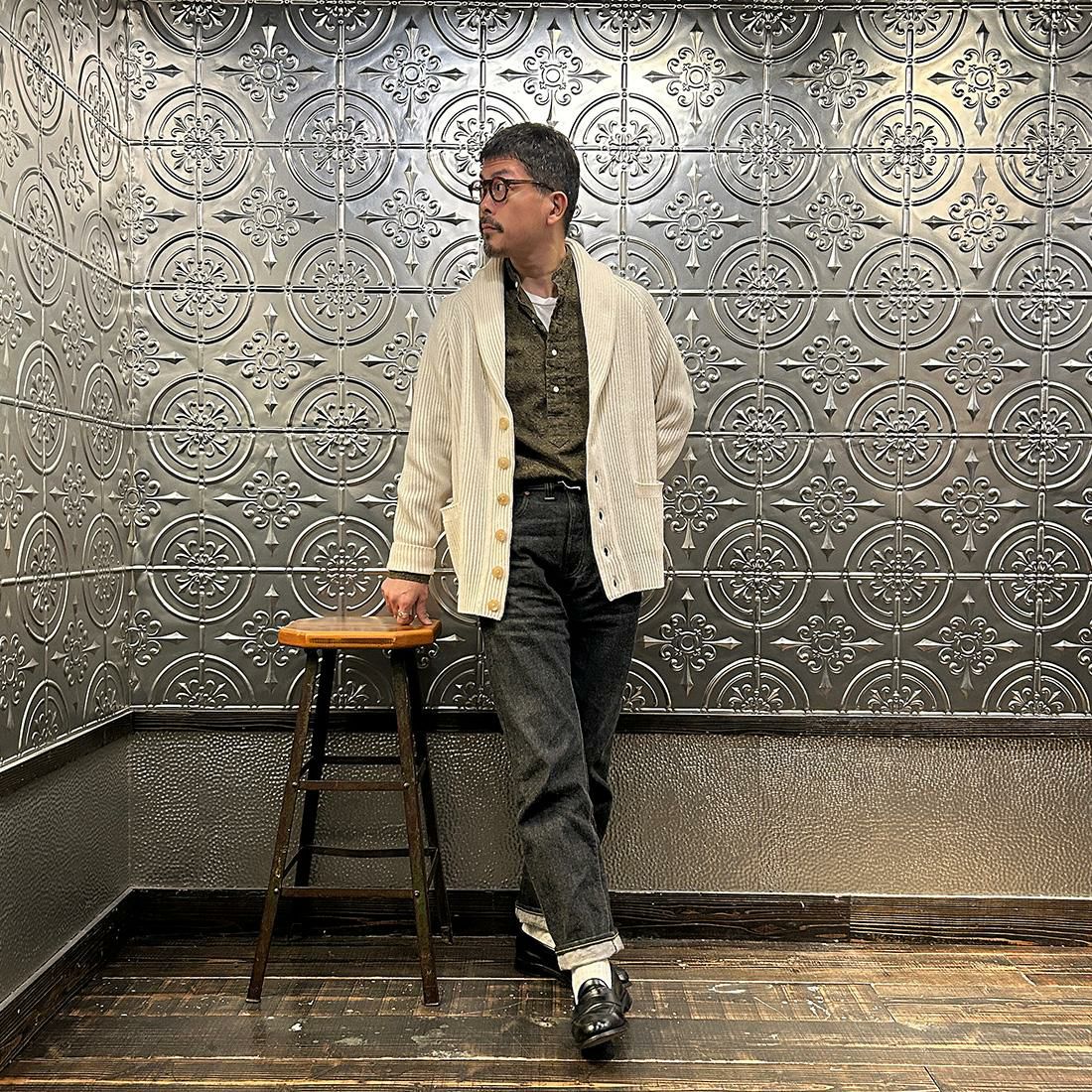 国内ブランドD.C. WHITE(ディーシーホワイト)のSMOKING JACKET。100%カシミヤのショールカラーカーディガン。スポーティなスタジャンから着想した配色でトラッドウェアの源流ともいえるスモーキングジャケットにする、そんな遊び心とクオリティを高い次元で融合させることを目指したアイテム。モンゴルに拠点を持つ会社が集毛から一貫して製品化を担い、地域による個体差を排除すべく、限られた遊牧民とダイレクトに契約。特定のヤギのみから収集された高品質な毛のみを使用。ニッティングにおいては、両畔編みの7ゲージ、糸番手は2/26を使用。製品一着あたり約11頭分のヤギの産毛を使用した非常に贅沢な仕様。着込むほどにしなやかなカシミヤに成長していく、まさに一生ものとしてふさわしい1着。