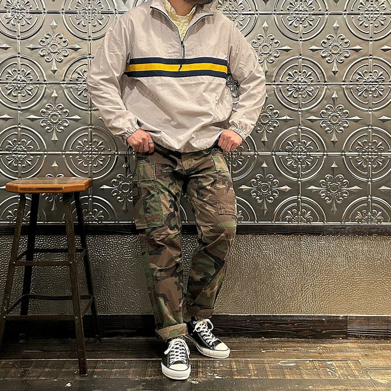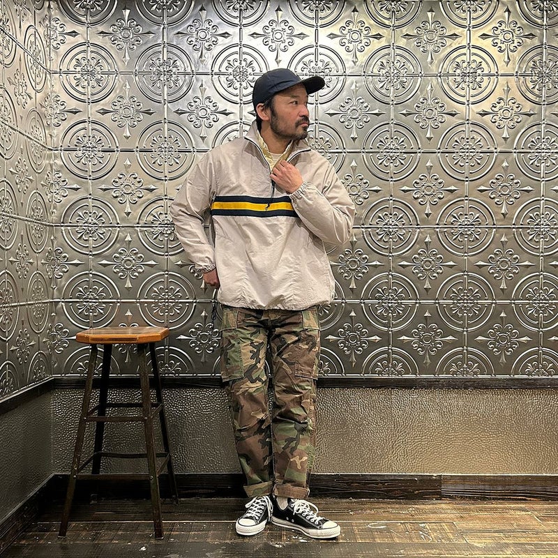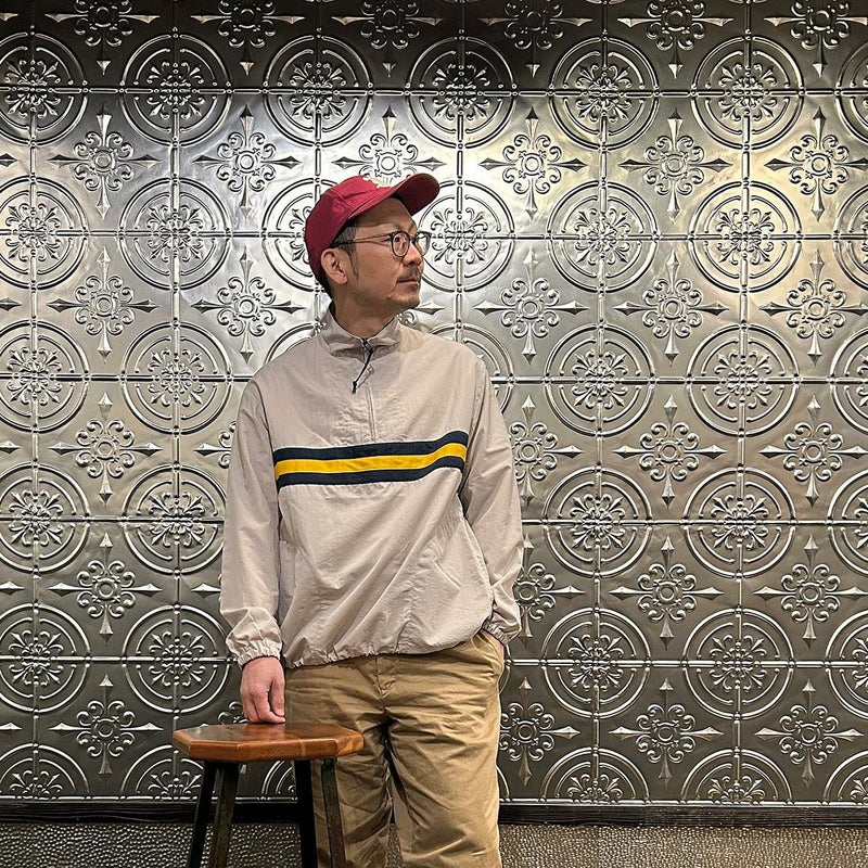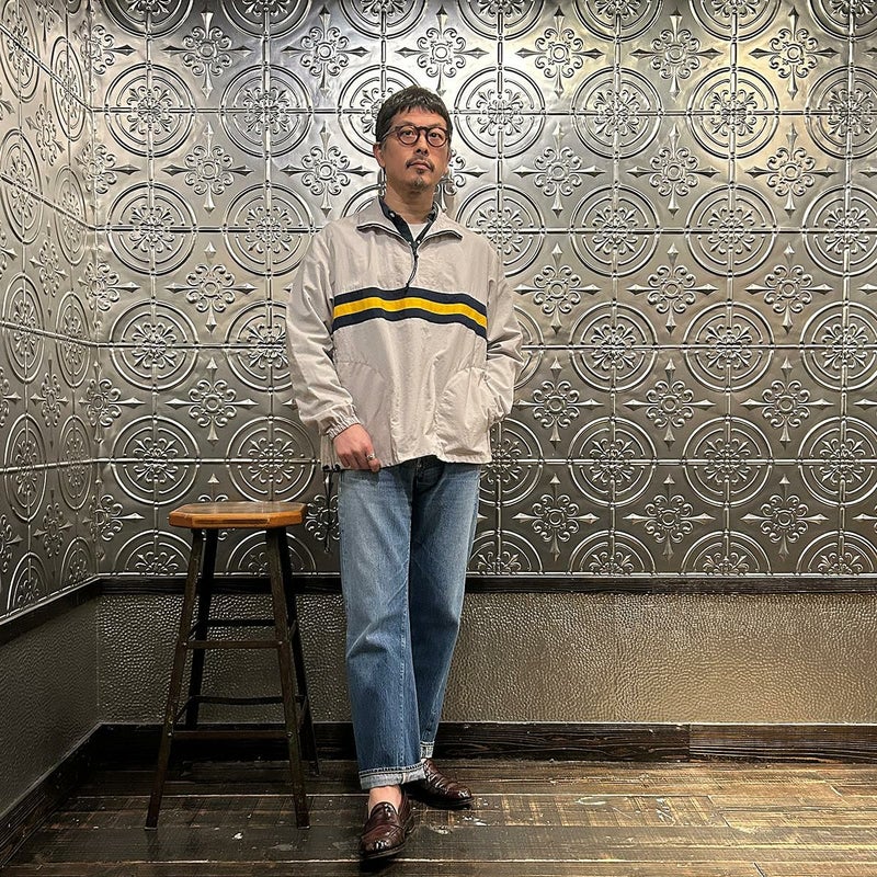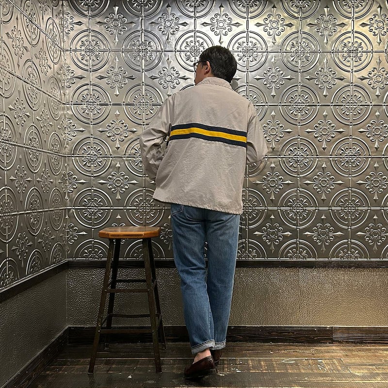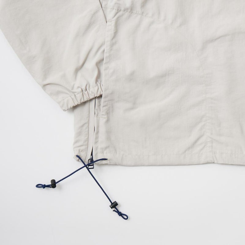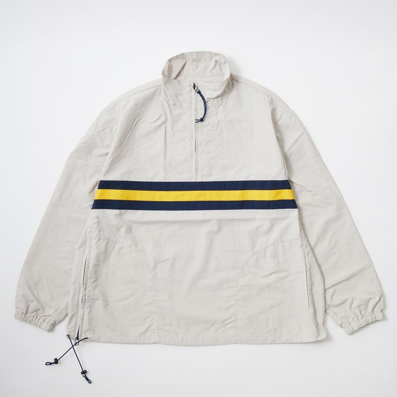 D.C. WHITE(ディーシーホワイト)のTRAINING BLOUSON。1960年代のアイビーリーグ大学生協ストアで販売されていたプロダクトを現代的に解釈したコレクション「ATLANTIC FIELD BY D.C.WHITE」。「テイクアイビー」で撮られた60年代のアイビーリーガーらが着用していたアノラックパーカーがデザインソースのスポーティなプルオーバージャケット。ハーフジップ仕様の低めのスタンドカラー。腰にはハンドポケット。右脇部分にはジップが装備されており着脱し易い仕様に。裾にドローコードが装備されておりシルエットアレンジが可能。素材は軽量で耐久性、速乾性、微撥水性をもつナイロンタスラン生地を採用。機能性も高い1着。