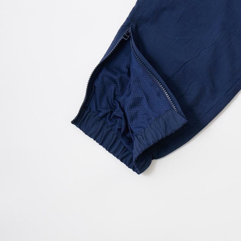 国内ブランド「D.C.WHITE ディーシーホワイト」が手掛けるスポーツウェアをフューチャーしたカテゴリー「ATLANTIC FIELD アトランティックフィールド」。そのカテゴリーからタスランナイロン製のパンツ「TRAINING PANT」がリリース。軽量で用途も広く、適度な耐久性と撥水性を併せ持つナイロン生地。裏地は肌離れも良いマイクロメッシュ生地。左腿部分に架空のスポーツクラブのロゴ刺繍。サイドポケット、バックウェルトポケット仕様。ウェストはゴムとドローコードで調整可能。裾はジップで開閉可。テーパードシルエットでいかにもスポーツウェアなルーズな印象はなくすっきりとしたキレイなライン。スポーツシーンだけでなく普段のカジュアルパンツとして着用可能なナイロンパンツ。