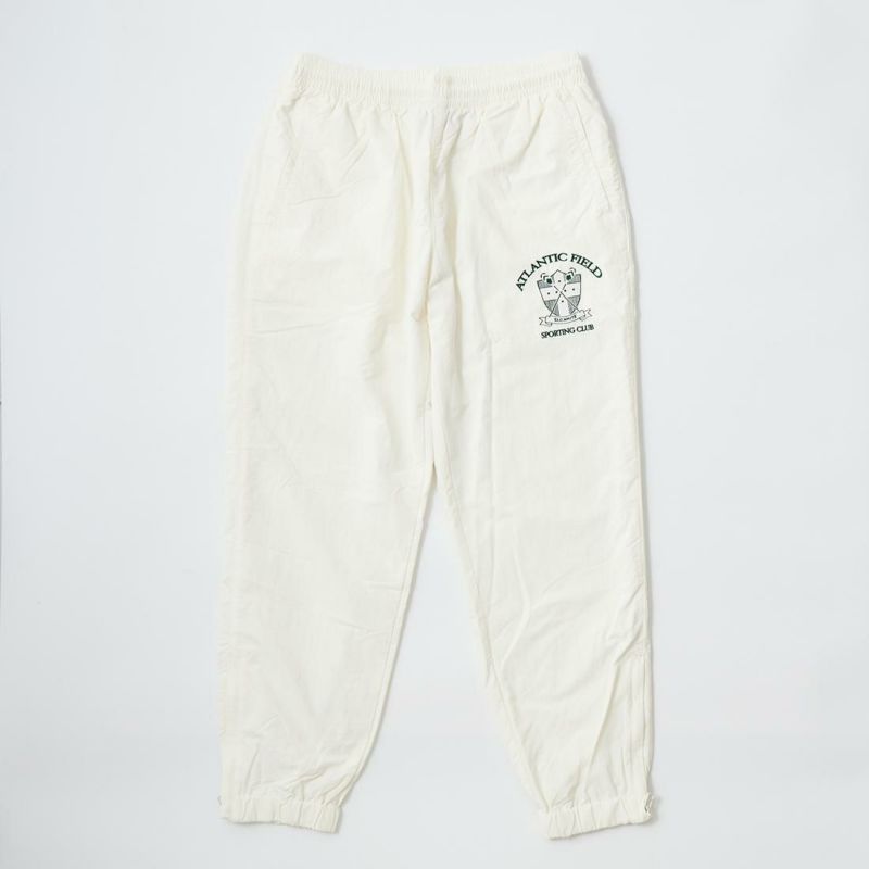 国内ブランド「D.C.WHITE ディーシーホワイト」が手掛けるスポーツウェアをフューチャーしたカテゴリー「ATLANTIC FIELD アトランティックフィールド」。そのカテゴリーからタスランナイロン製のパンツ「TRAINING PANT」がリリース。軽量で用途も広く、適度な耐久性と撥水性を併せ持つナイロン生地。裏地は肌離れも良いマイクロメッシュ生地。左腿部分に架空のスポーツクラブのロゴ刺繍。サイドポケット、バックウェルトポケット仕様。ウェストはゴムとドローコードで調整可能。裾はジップで開閉可。テーパードシルエットでいかにもスポーツウェアなルーズな印象はなくすっきりとしたキレイなライン。スポーツシーンだけでなく普段のカジュアルパンツとして着用可能なナイロンパンツ。