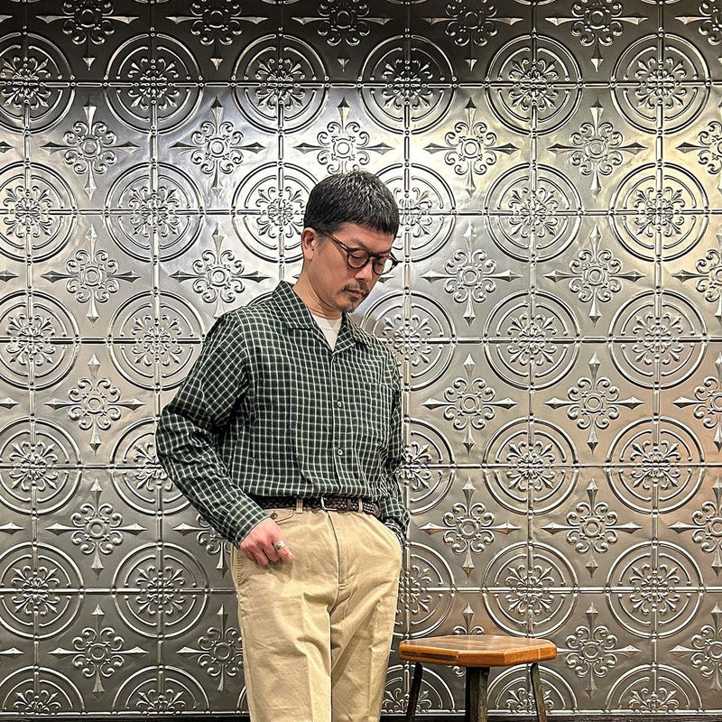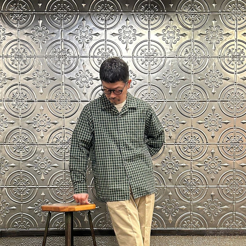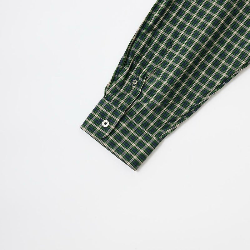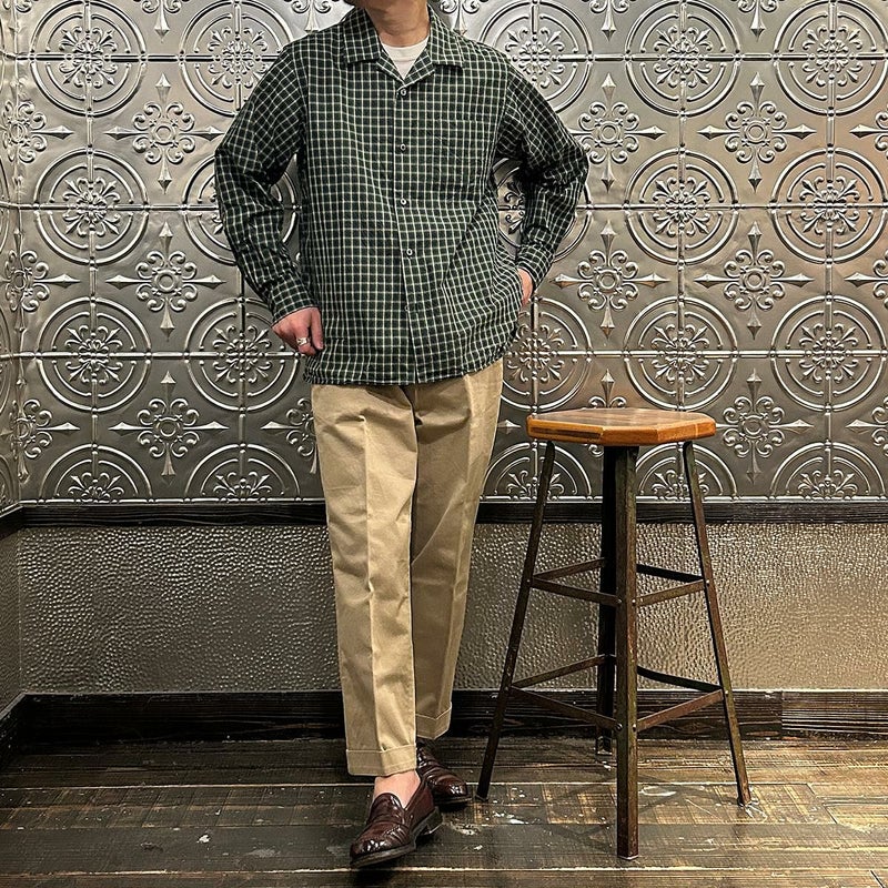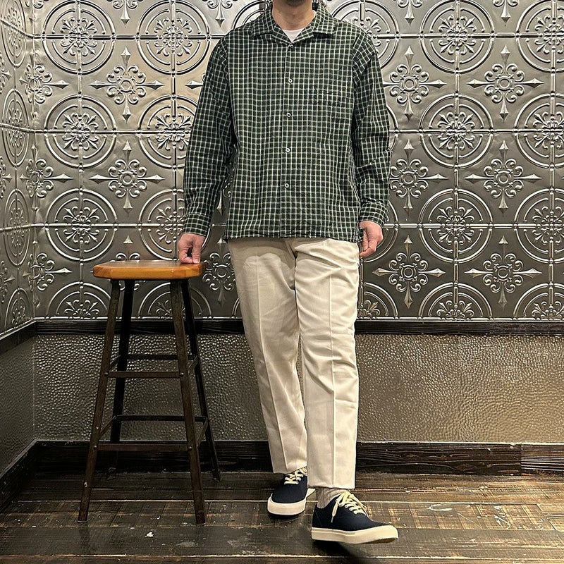 D.C. WHITE(ディーシーホワイト)のPROFESSOR SHIRT。プロフェッサーシャツはアイビーリーグの教授たちが着用したであろうシャツの知的な雰囲気を体現することを意図してデザインされたシャツ。テーラードジャケットを得意とするブランドが提案する開襟シャツは、襟をジャケットのラペルに見立てた斬新なアプローチ。襟がペタッと寝てしまわないように立体的にキレイにロールするように考えられています。ベーシックなチェック柄の3シーズン着れるコットンポプリン生地。国内屈指のドレスシャツ工場で縫製されており、細かいミシンピッチやボタン付けなどクオリティーの高さが分かります。左胸パッチポケットで左右の裾部分はスリット仕様。タックアウトしてもタックインしても着れるバランス。一枚で着た時の雰囲気が凄く良いシャツです。