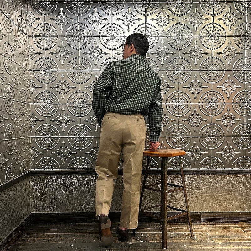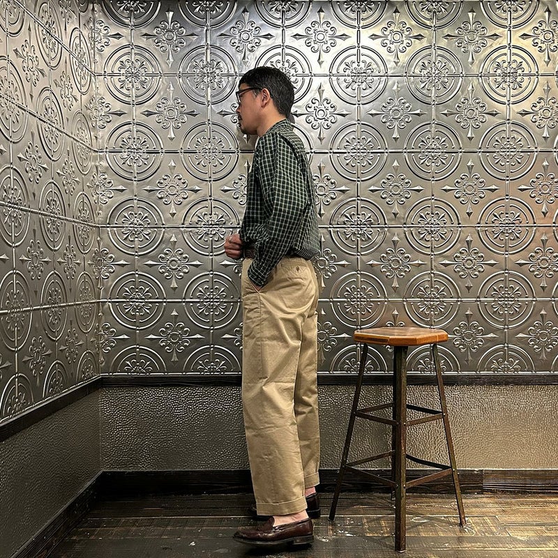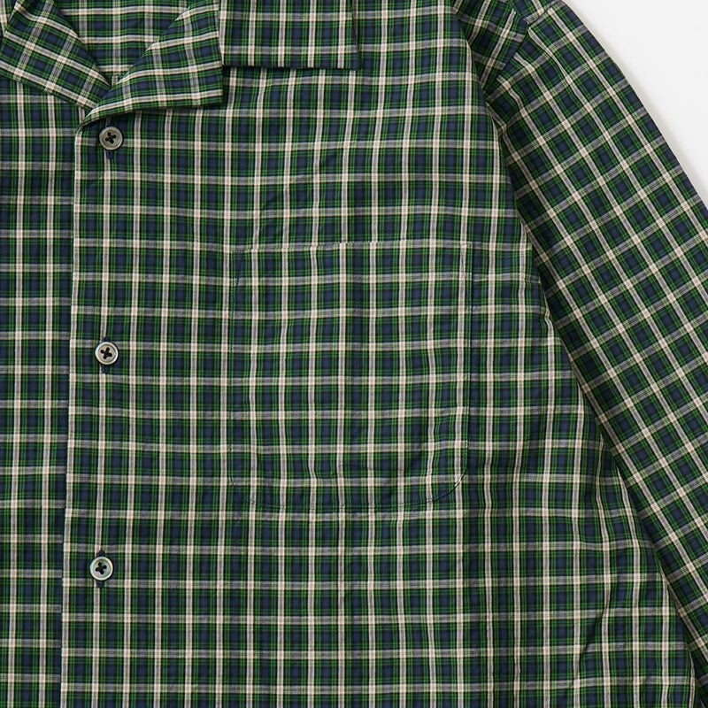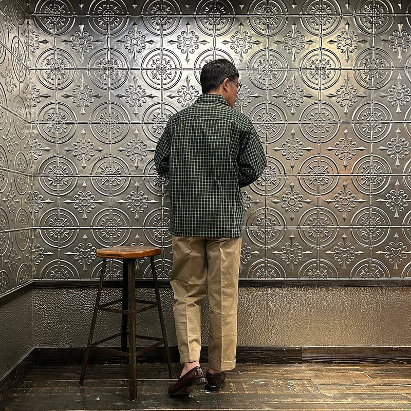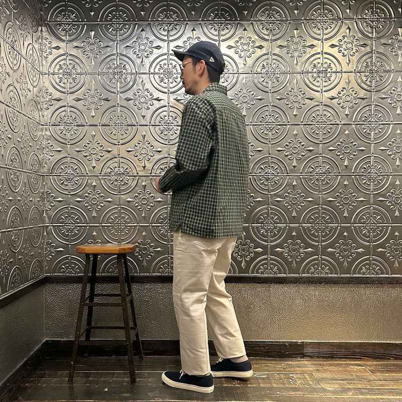 D.C. WHITE(ディーシーホワイト)のPROFESSOR SHIRT。プロフェッサーシャツはアイビーリーグの教授たちが着用したであろうシャツの知的な雰囲気を体現することを意図してデザインされたシャツ。テーラードジャケットを得意とするブランドが提案する開襟シャツは、襟をジャケットのラペルに見立てた斬新なアプローチ。襟がペタッと寝てしまわないように立体的にキレイにロールするように考えられています。ベーシックなチェック柄の3シーズン着れるコットンポプリン生地。国内屈指のドレスシャツ工場で縫製されており、細かいミシンピッチやボタン付けなどクオリティーの高さが分かります。左胸パッチポケットで左右の裾部分はスリット仕様。タックアウトしてもタックインしても着れるバランス。一枚で着た時の雰囲気が凄く良いシャツです。