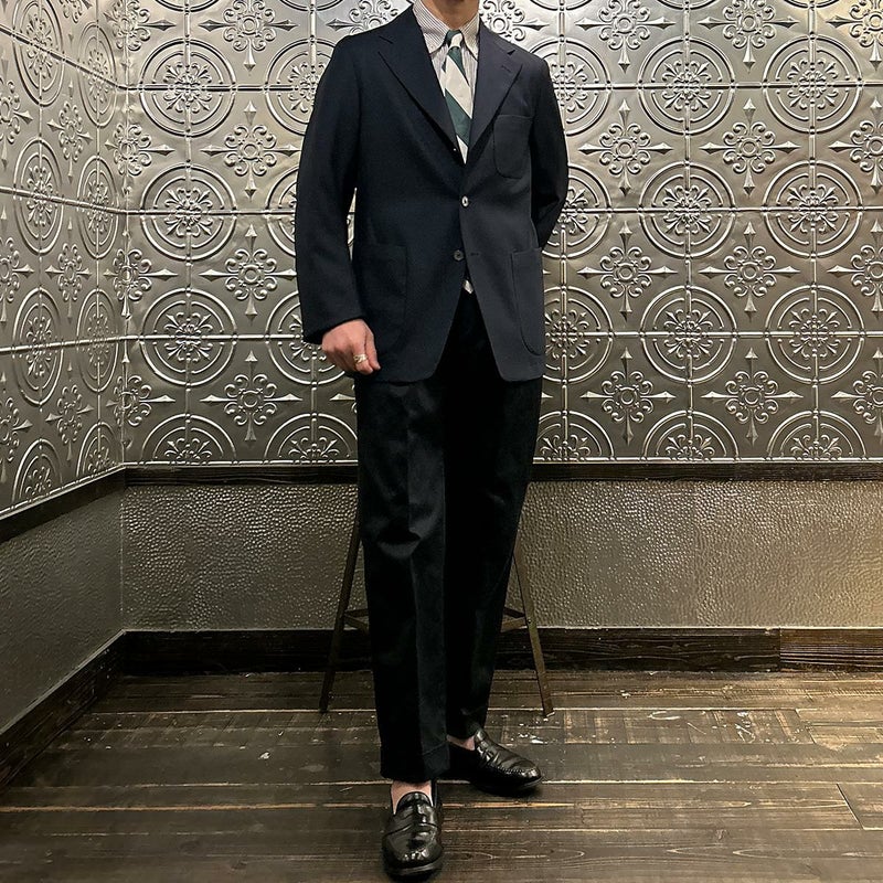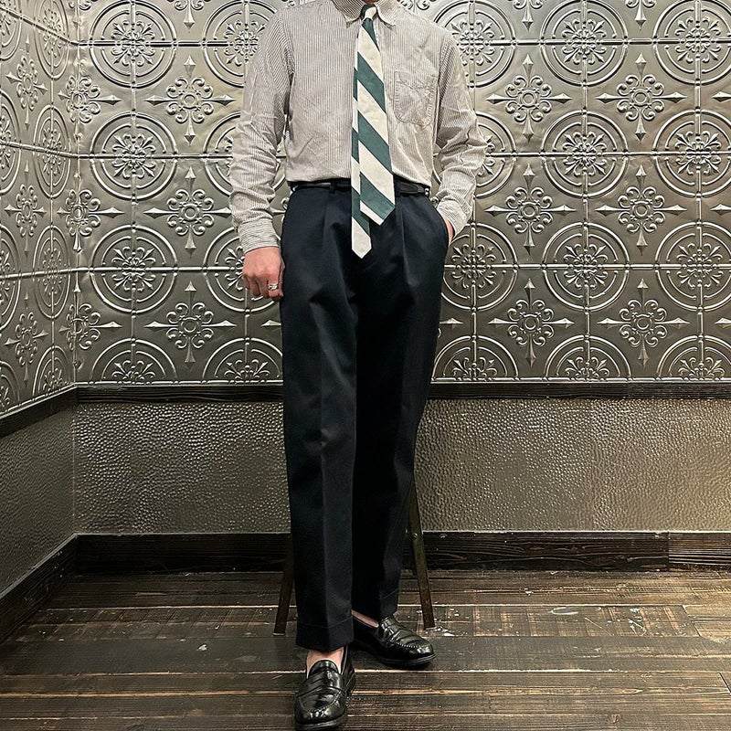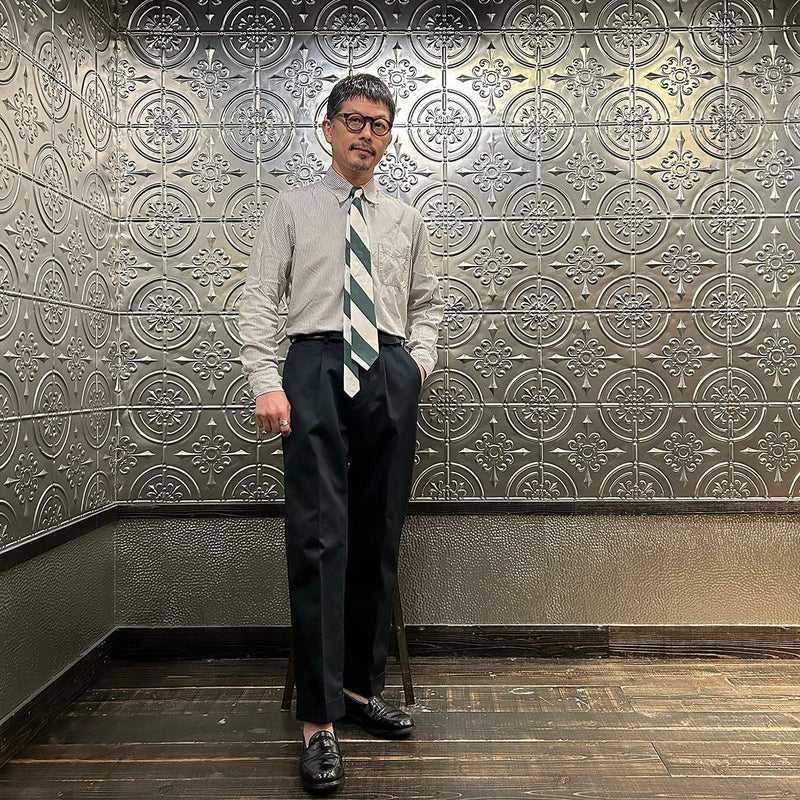 アメトラ好きにオススメしたいタイ。ネイビージャケットとの相性は勿論のこと、時々気分を変えたい時など様々な用途、スタイリングにも使って頂き易いデザイン。それにそこまで主張の強い配色ではないつくりから飽きずに長く使えるところも魅力的な1本ですね。