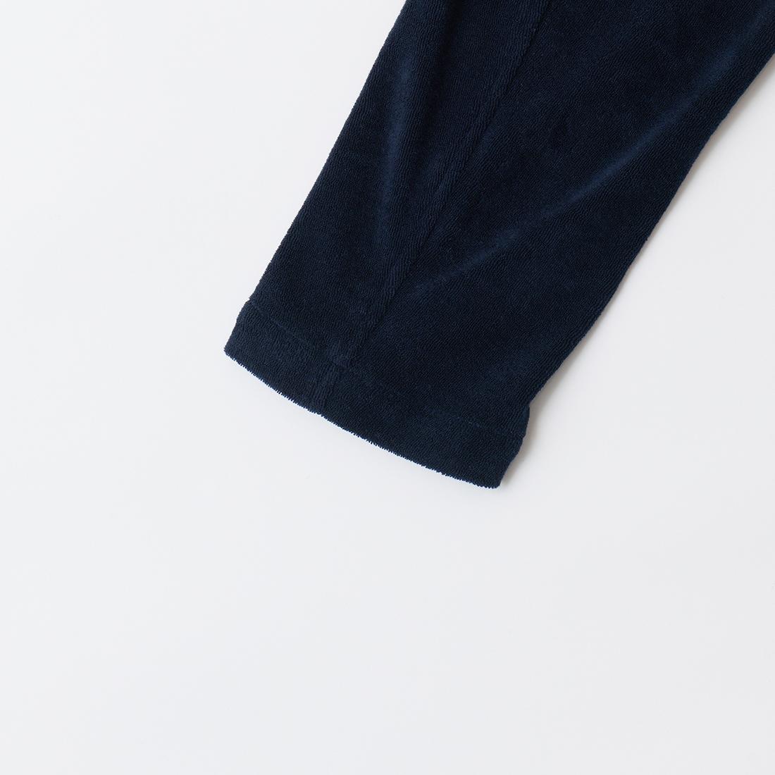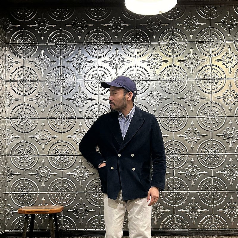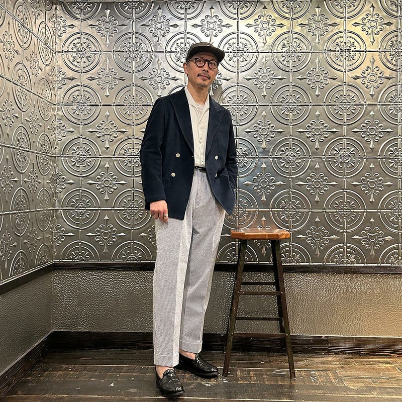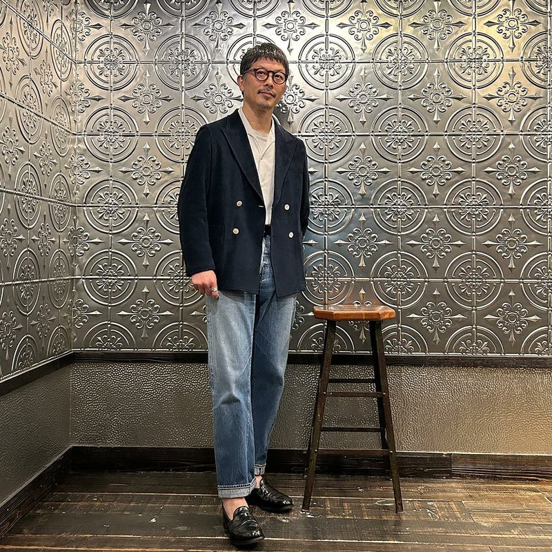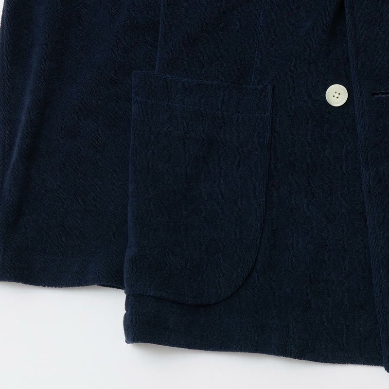 国内ブランドD.C. WHITE(ディーシーホワイト)のNEWPORT JACKET。85%コットン、15%ポリエステルのパイル素材を使用した4つボタンのダブルブレストジャケット。なだらかなカーブを描くナチュラルショルダー。胸ポケットはなし。腰は左右にパッチポケットを配置。バックはセンターベンツ。スペインのSIDOGRAS社のパイル生地を採用。カーディガン感覚で気軽に羽織れるジャケット。