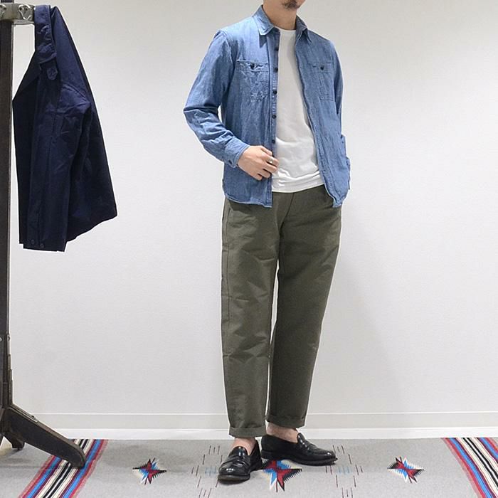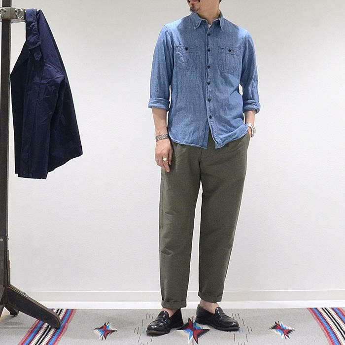 Double RL(ダブルアールエル)のCAMERON WS。ウエストに絞りのないボックスシルエット、トリプルニードル(3本針)による縫製とワークシャツらしいディテール。両胸にパッチポケット付き。キャッツアイボタン、マチ付きの裾がクラシカルなスタイルのワークシャツです。シャンブレークロスを使用しており経年変化も楽しんで頂ける永く愛用できる1着です。