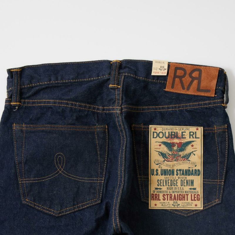 Double RL(ダブルアールエル)のSTRAIGHT LEG 5POCKET DENIM。15.3オンスのRRL(ダブルアールエル)専用に開発されたカスタムダークシェードのインディゴカラーセルビッジデニムを使用したアメリカ製ジーンズ。レギュラーライズのストレートレッグシルエット。手縫いのチェーンステッチのウエストバンド。耐久性を高めるインサートベルトループ、長年着ても変わらないフィット感をキープするシグネチャーのシャンク留めボタンフライ。オーセンティックなワッシャーとリベットを施した5ポケットスタイル、セルビッジ コインポケット、コインポケットに Double RL(ダブルアールエル)の刺繍、厚手ツイルのポケット裏地。サンフォライズ加工により縮みを防止。まさにこれぞDouble RL(ダブルアールエル)らしい拘りの詰まった1本です。