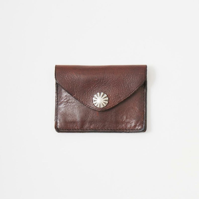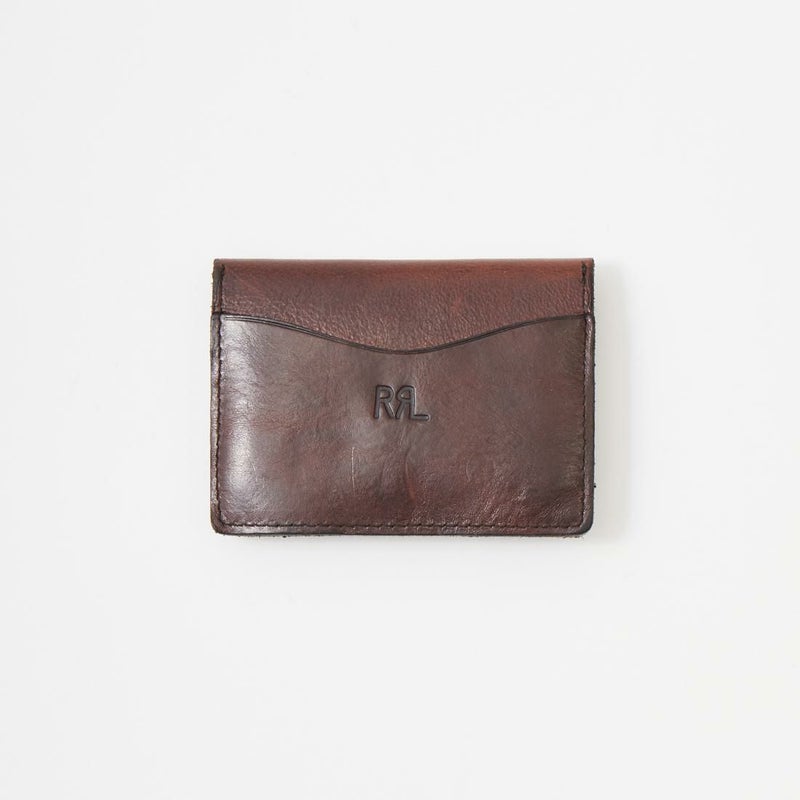 Double RL(ダブルアールエル)のCARD WALLET WALLET SMALL LEATHER。タンニンなめしを施したイタリア製レザーを使用したカードケース。コンチョボタンのスナップ留め仕様。内側にカードスロット3つと背面にスリップポケットを装備。背面に"RRL"のデボス加工。Double RL(ダブルアールエル)らしいヴィンテージ感たっぷりのカードケース。