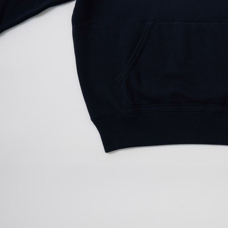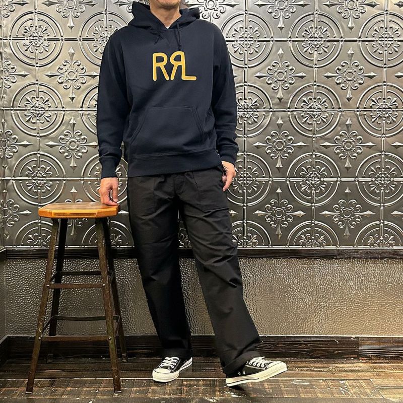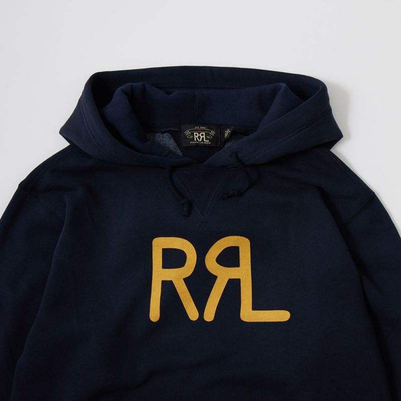 Double RL(ダブルアールエル)のPO HOOD LONG SLEEVE PULLOVER COTTON POLY FLEECE。Double RL Ranchのロゴがプリントされたフリースフーディ。ダブルVガセットをあしらったヴィンテージ感たっぷりのスウェットパーカー。フロントウエスト部分にはカンガルーポケットを装備。 ウォッシュ加工による着込んだ表情は雰囲気抜群の仕上がり。ネイビーボディーにイエロープリントの配色がアメリカンな雰囲気の1着。