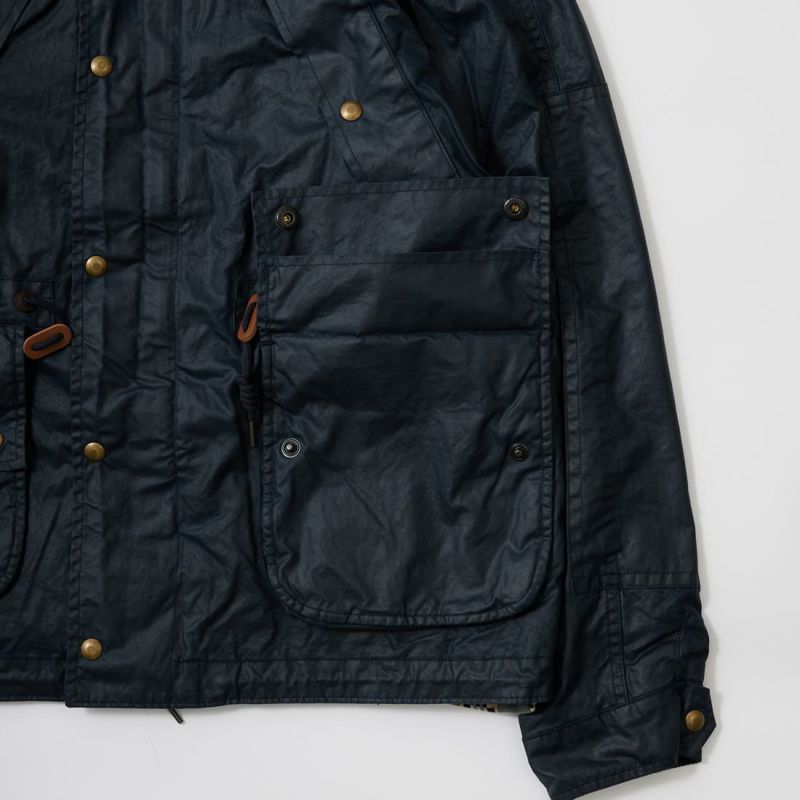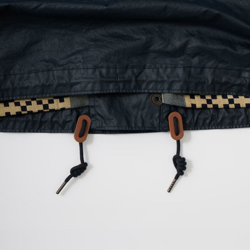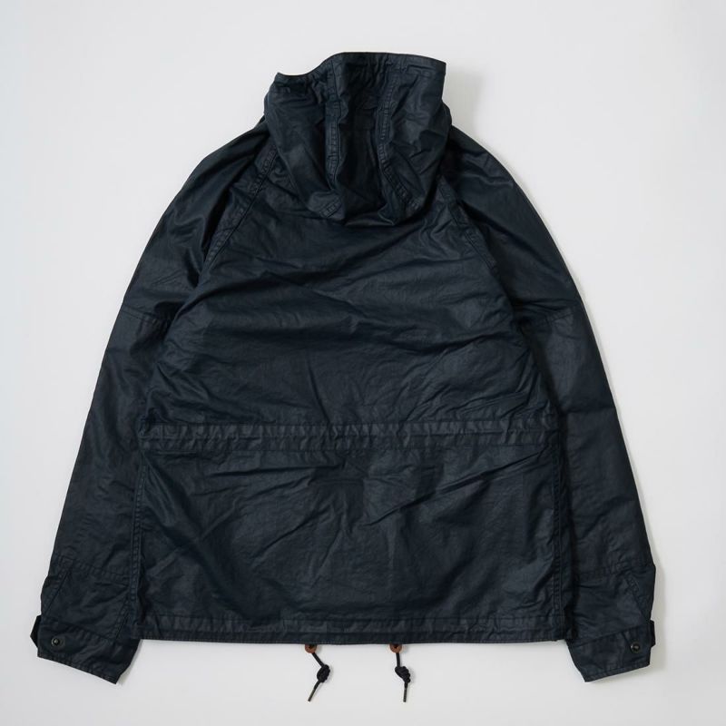 Double RL(ダブル アール エル)のTHOMPSON JKT LINED COAT COTTON OIL CLOTH。マウンテンパーカーを彷彿とさせるデザインのジャケット。レザーのストッパーが付いたドローストリング付きフード。ウエストと裾にも同様のドローストリングを装備。胸部分にはハンドウォーマーがポケット2つ。フロントウエストにスナップ付きポケットを左右に装備。ダブル アール エルらしい柄のジャカード織りクロスの裏地もいい雰囲気。素材はワックス加工を施したコットンを専門的に扱う、英国の歴史あるミルから調達したオイルクロス素材を使用した1着。