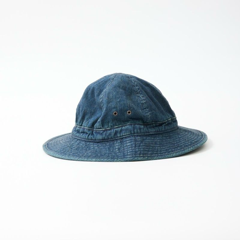 Double RL(ダブルアールエル)のDAISY MAE HAT COTTON DENIM。1940年代のUSネイビータイプの帽子。ライトオンスの日本製本藍染めコットンリネンデニムを使用。内側にセルビッジの裏地を採用するなどDouble RL(ダブルアールエル)の拘りが詰まった縫製仕様。ウォッシュ加工が施されており既に雰囲気は出ていますが更なる経年変化も楽しんで頂けるハット。