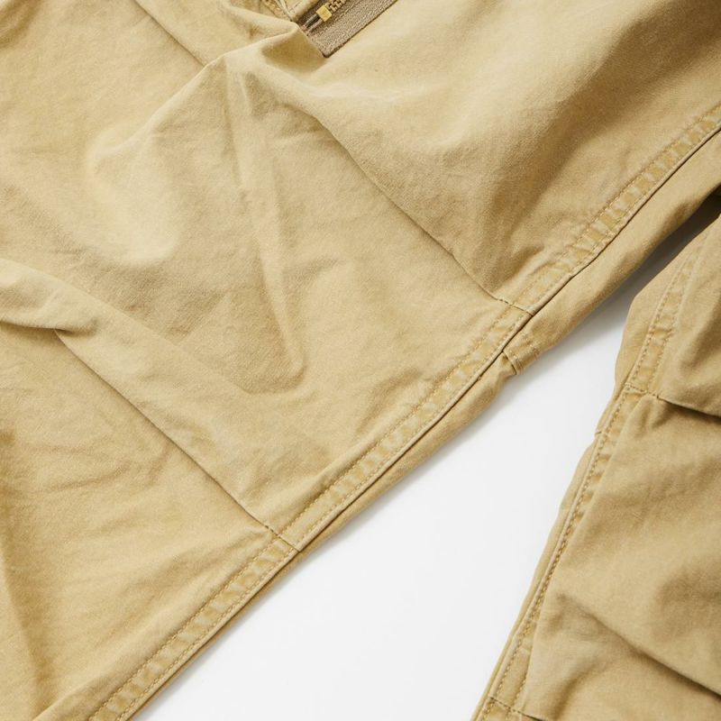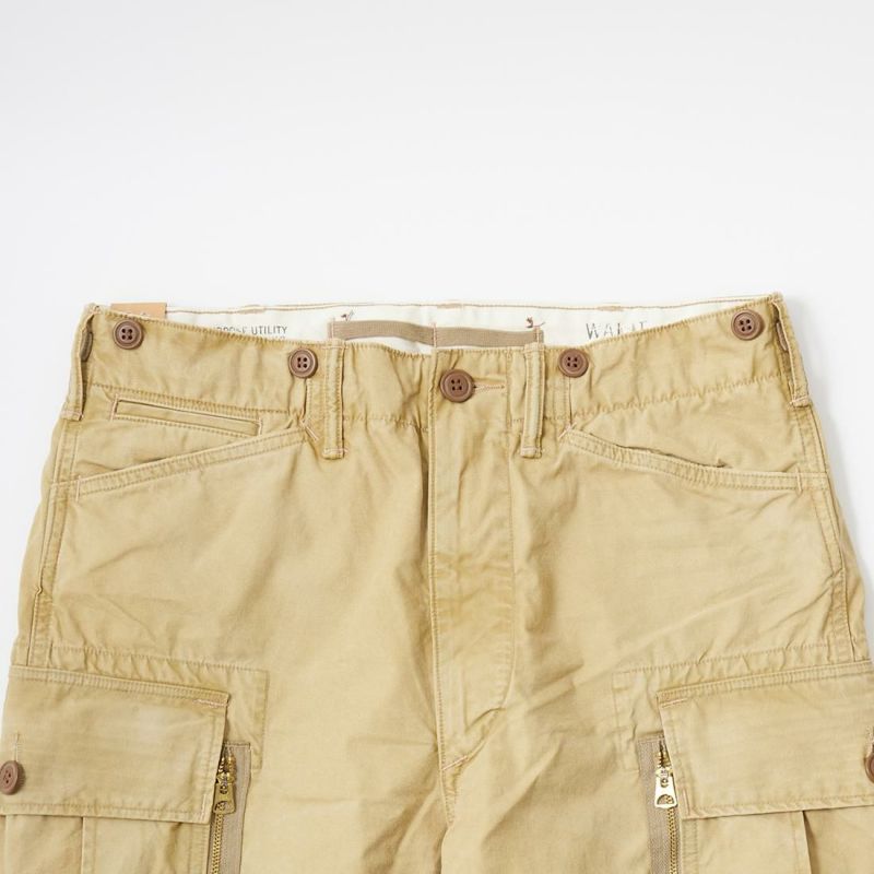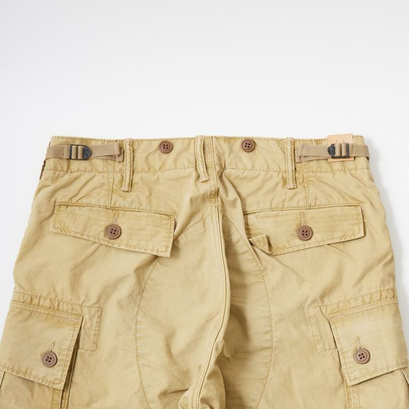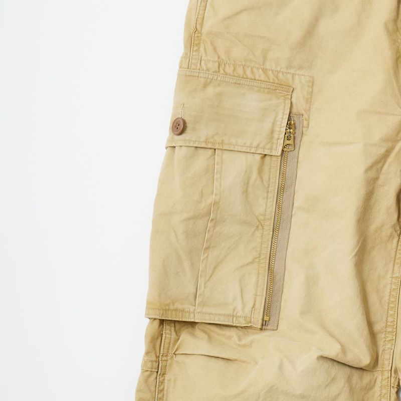 Double RL(ダブルアールエル)のRANGER CARGO CARGO COTTON P/D POPLIN。7.5オンスのコットンポプリンを使用したカーゴパンツ。サイドから手を入れられるジップ付きカーゴポケットを左右に配置。腰部分には手を入れやすい角度のスラッシュポケットとコインポケット。バック左右にもフラップポケットを装備。フロントはジップフロント。腰回りにはサスペンダーボタンとバックサイドにバックル付きのアジャスターを装備。ゆったりとしたストレートシルエット。膝はタックが入り可動性の高いつくり。コットンポプリン素材で春に穿き心地も良い1本。