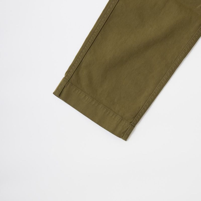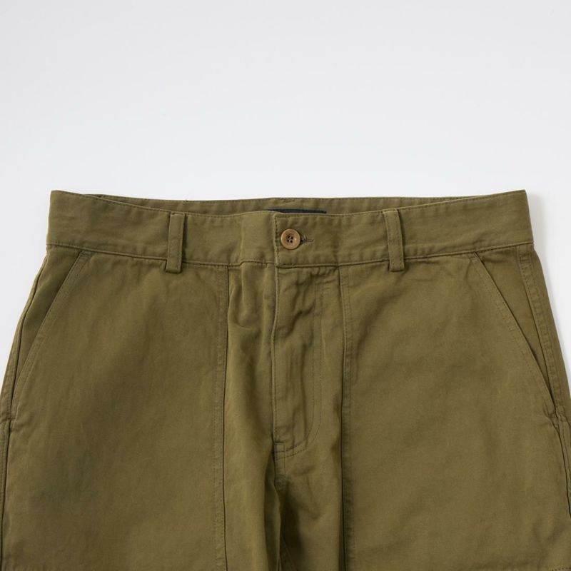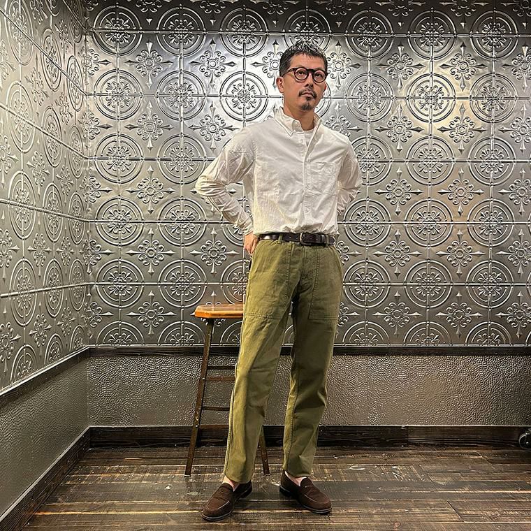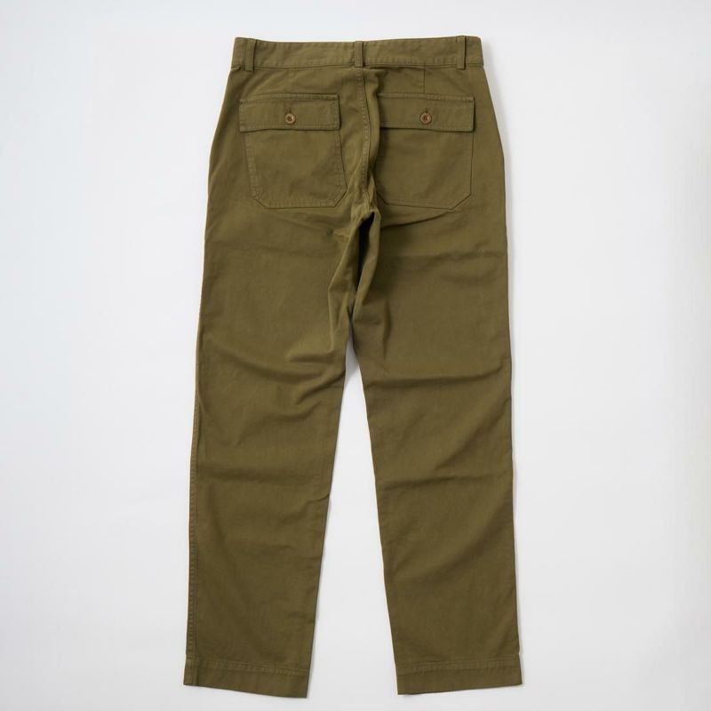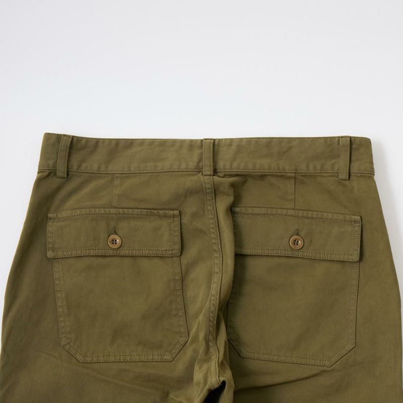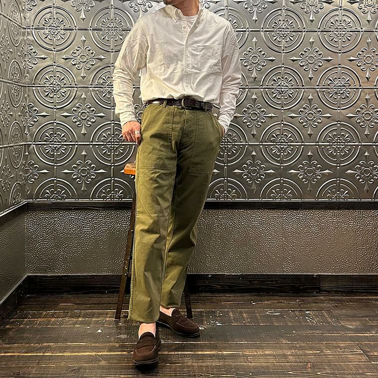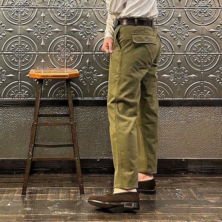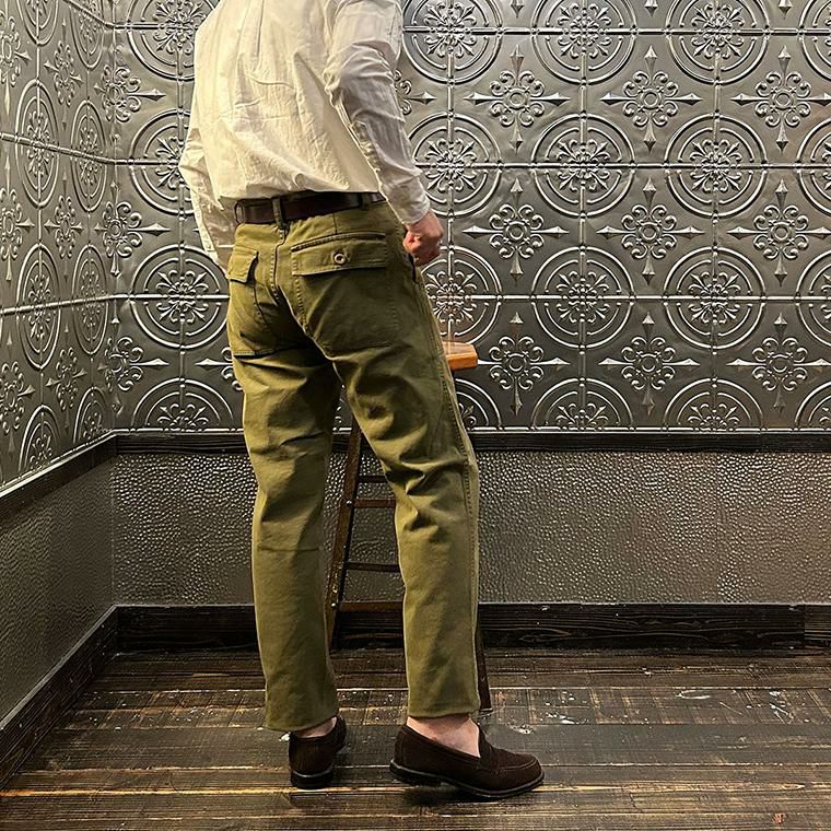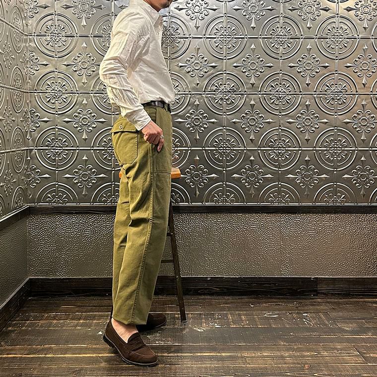 EAST HARBOUR SURPLUS(イーストハーバーサープラス)のTRUNK WASHED FATIGUE PANT。日本代理店の別注モデルのファティーグパンツ。フロントのパッチポケット、バックのフラップポケットが特徴的なディテール。フロントはジップフロント。大き目のサイズのパッチポケットがミリタリーパンツらしい部分。腿回りには適度なゆとりがあり膝下からテーパードの効いた綺麗なシルエット。ウォッシュ加工されたコットンツイル素材も良い雰囲気の1本です。