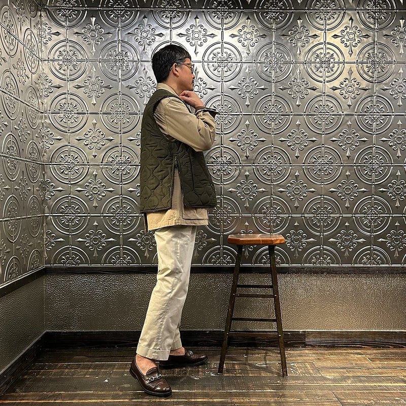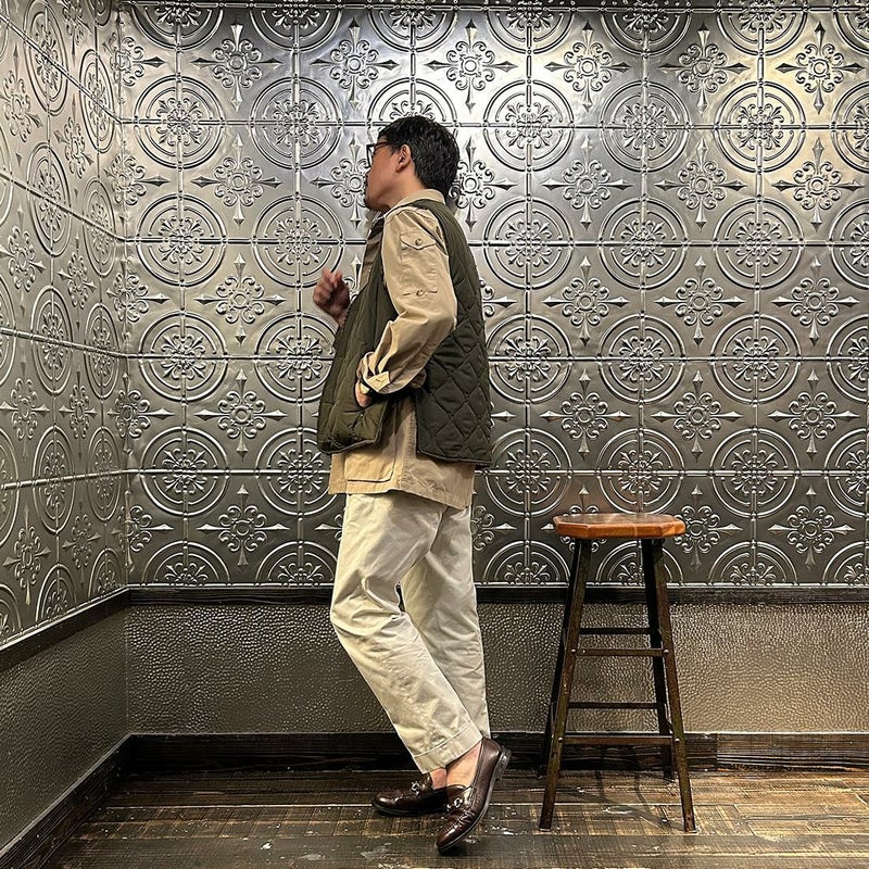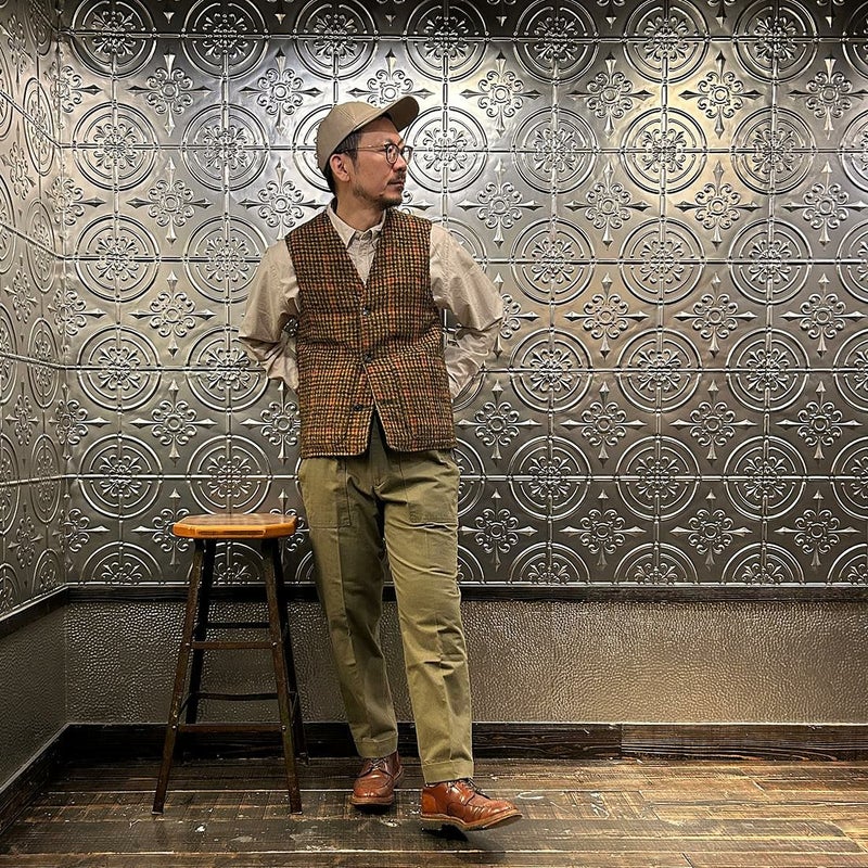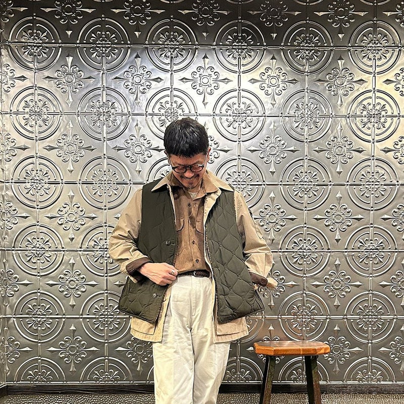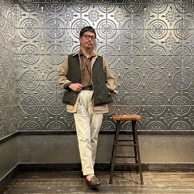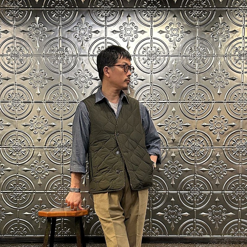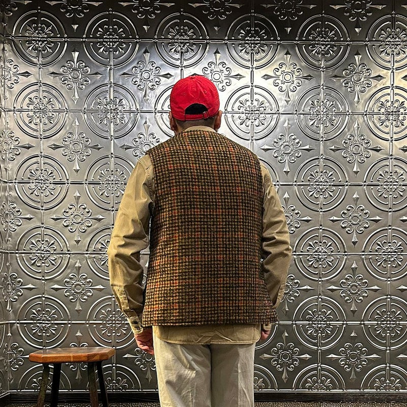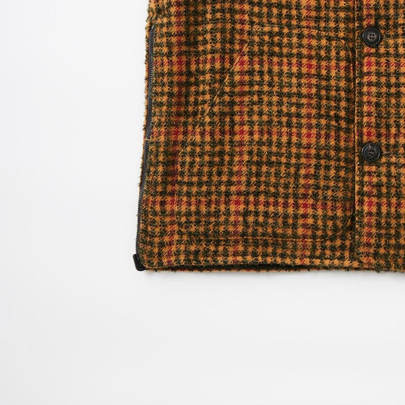 EAST HARBOUR SURPLUS(イーストハーバーサープラス)のBRISTOL REVERSIBLE VEST MILITARY STITCH。ウールフェイスとナイロンフェイスのリバーシブル仕様の中綿入りベスト。ブリティッシュな雰囲気のガンクラブチェックのウールフェイス。ミリタリーアウターを彷彿とさせるナイロンフェイス。サイドにジップが付けられておりシルエットアレンジが可能。単体でもレイヤードアイテムとしても使える便利な1着。