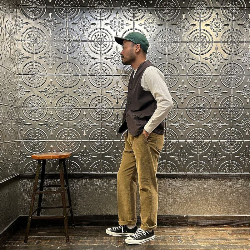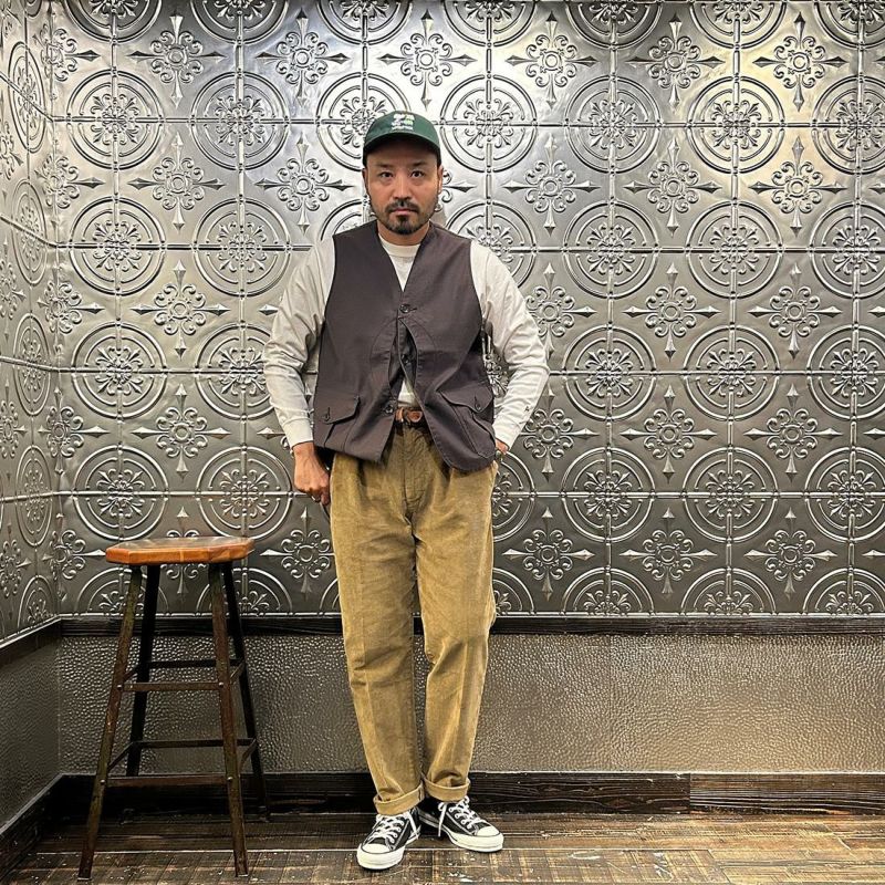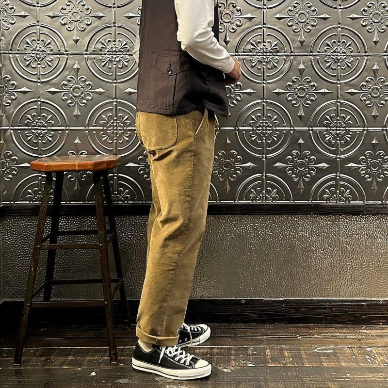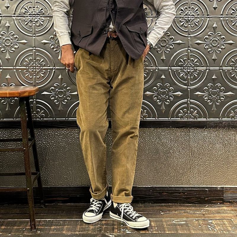 East Harbour Surplus (イーストハーバーサープラス) OXNARD ONE PLEATS CORDUROY TROUSER - GREEN (LT BROWN)