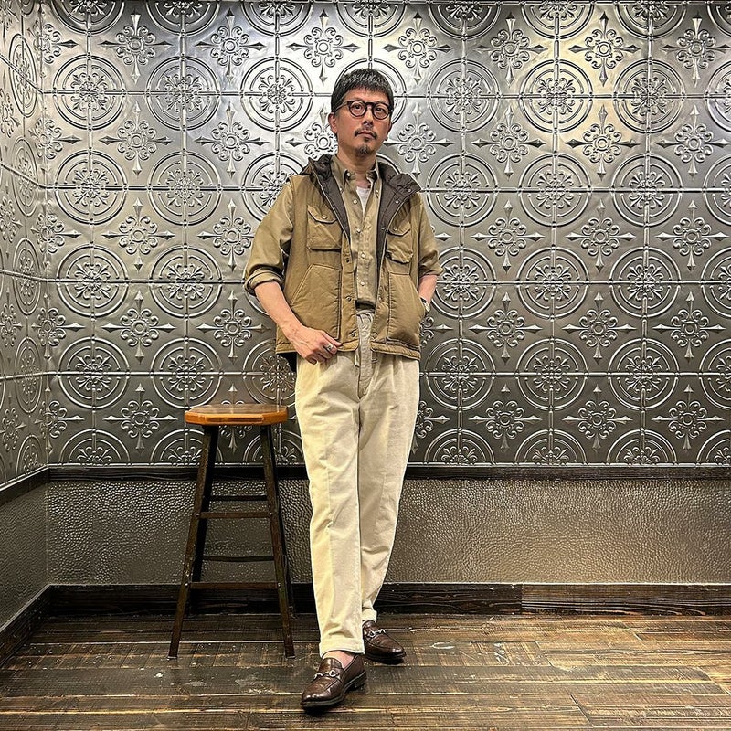 East Harbour Surplus (イーストハーバーサープラス) OXNARD ONE PLEATS CORDUROY TROUSER - GREEN (LT BROWN)