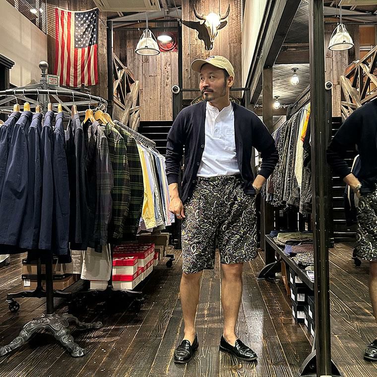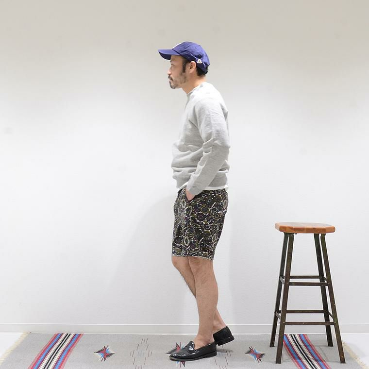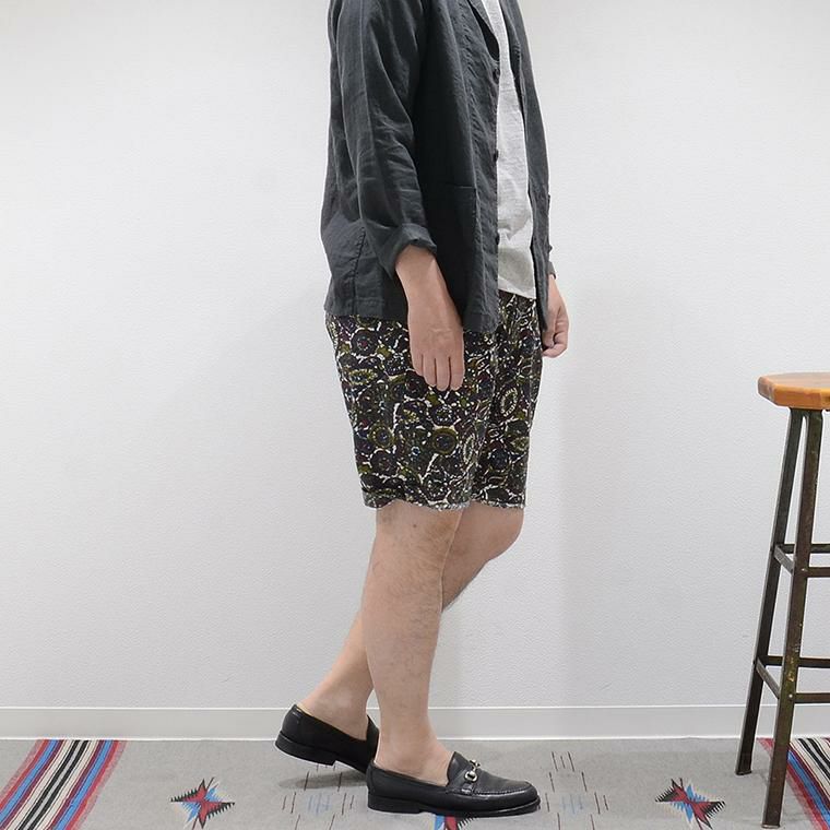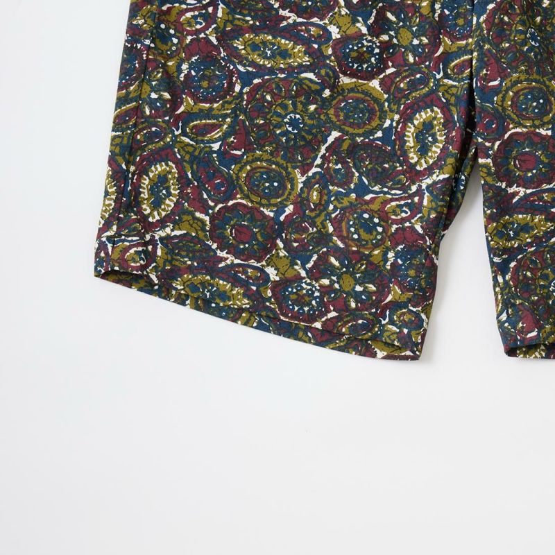 ENGINEERED GARMENTS(エンジニアド ガーメンツ)のSUNSET SHORT COTTON BATIK。今シーズンのコレクションを象徴するバティックプリント素材を使用したサンセットショーツ。フロントにタックを入れ膨らみを持たせて動きやすいリラックス感のあるシルエットのショーツ。ウエストはベルトループ+内側にコード付きでサイズ調節が可能。両サイドのポケットとバックは左側のみジップポケットが配置されたシンプルなデザインのショーツ。バティックプリントがシンプルなスタイリングのアクセントになってくれる1本です。