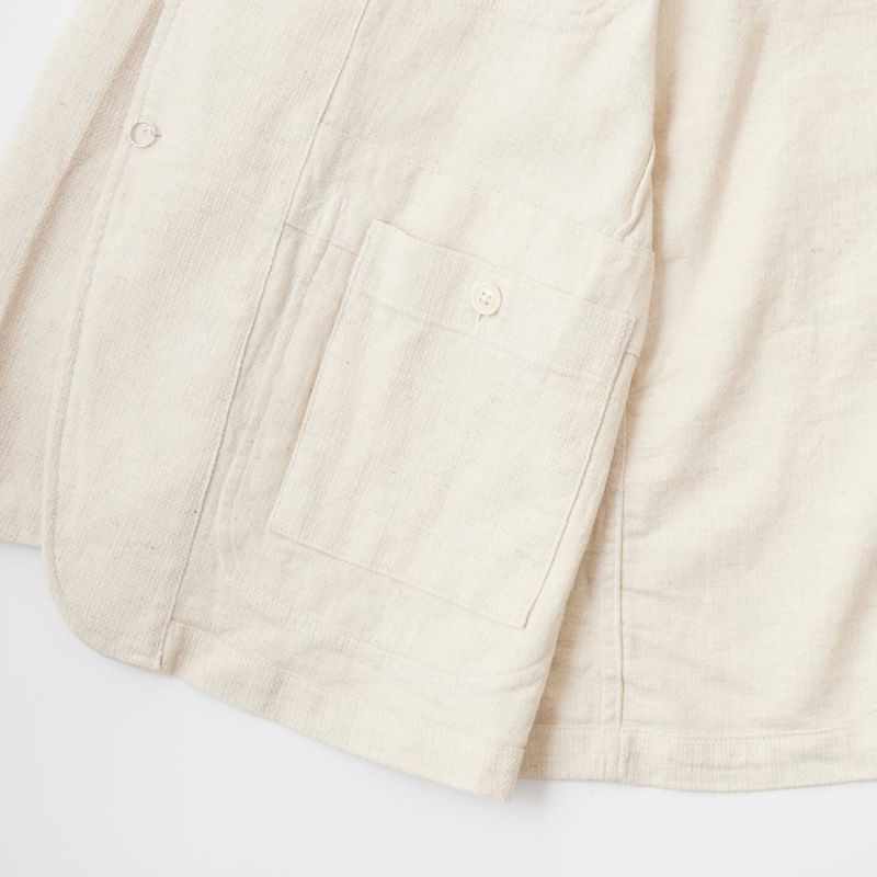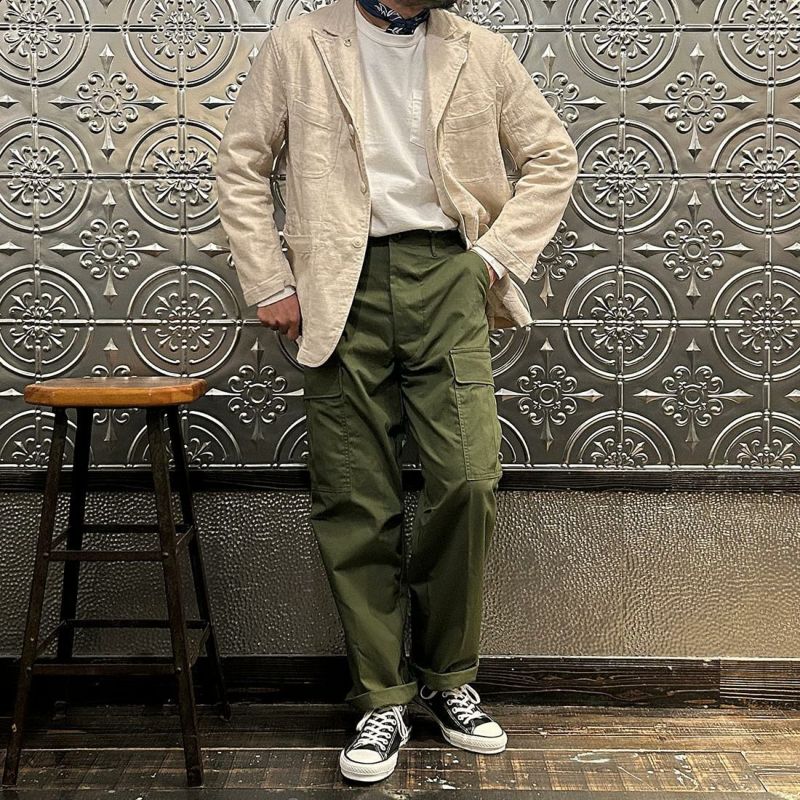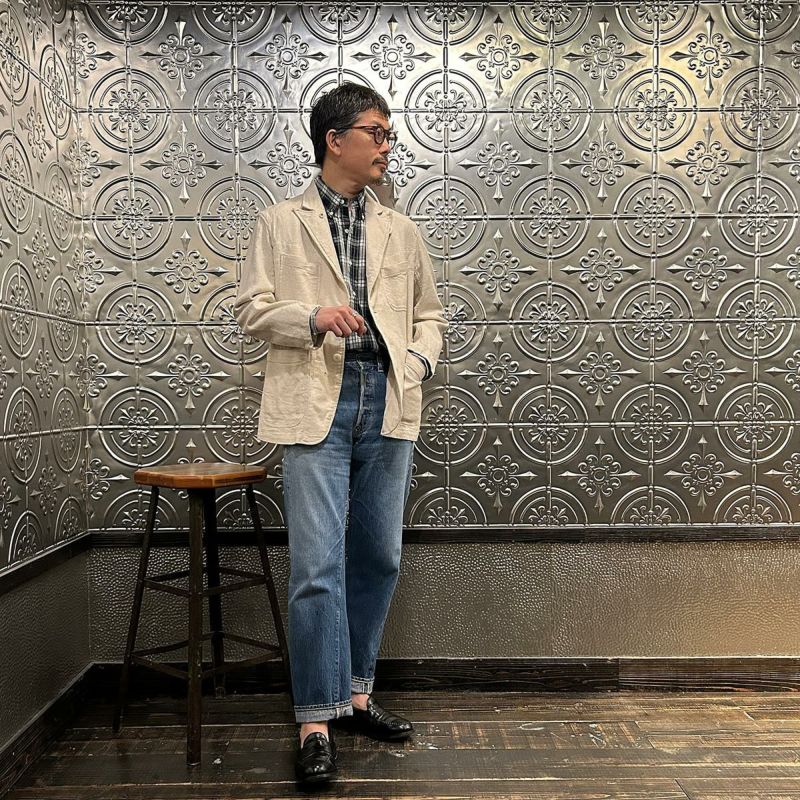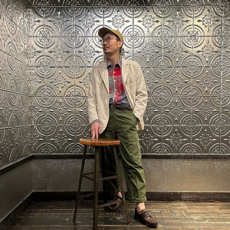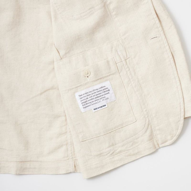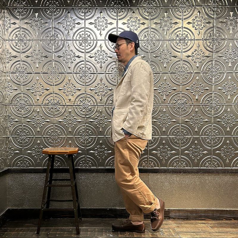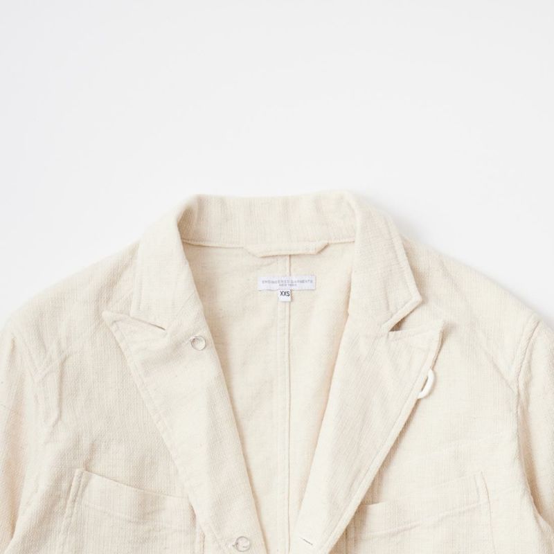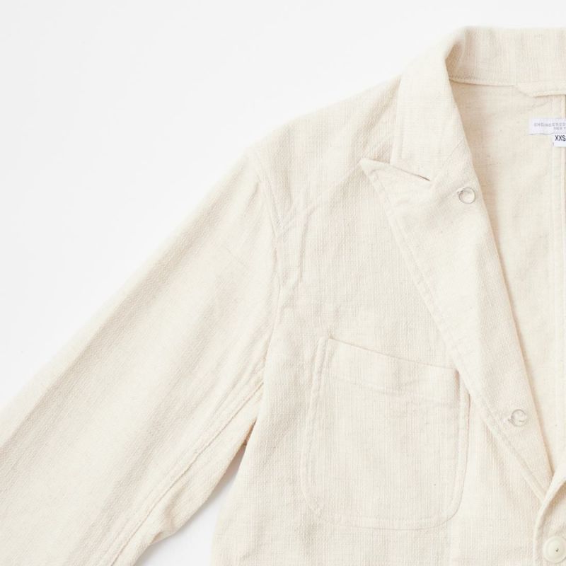 ENGINEERED GARMENTS(エンジニアド ガーメンツ)のBEDFORD JACKET CL JAVA CLOTH。凹凸感とドライな風合いが特徴のジャバクロスを使用したベッドフォードジャケット。襟裏にジグザグステッチを施したピークドラペルにチェンジボタンを採用した3つボタンタイプ。フロントはワークの要素を加えた4つのパッチポケットを配し、内側にも2つの内ポケットが付きます。テーラードジャケットとカバーオールジャケットの間のようなデザインとサイズ感。太めから細身、ジーンズからスラックスまで、多種多様なパンツとの合わせを楽しめる万能ジャケット。