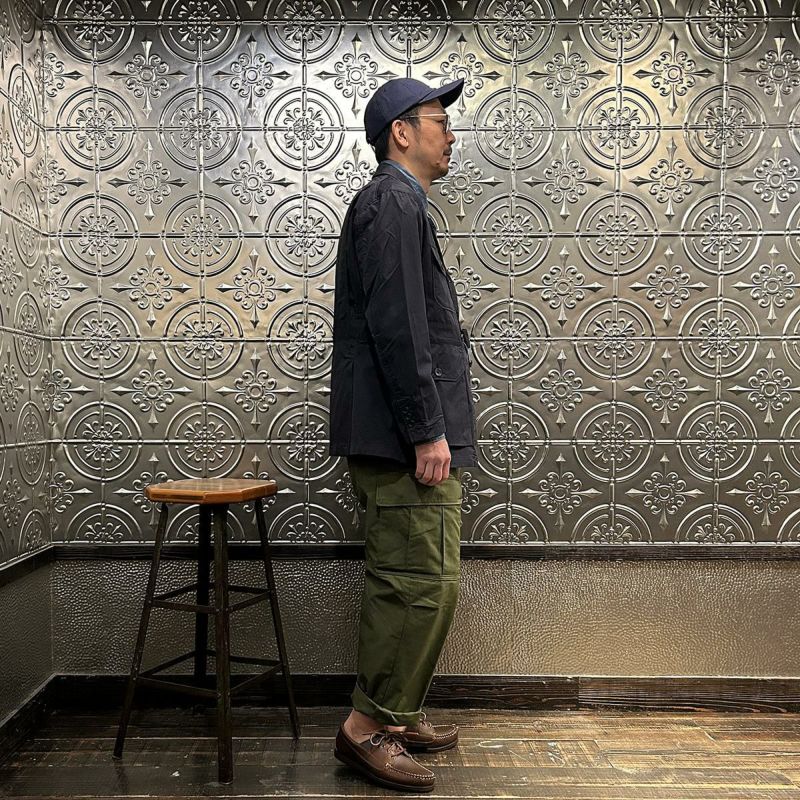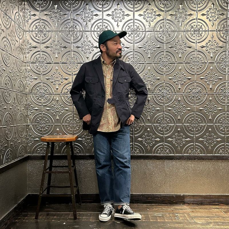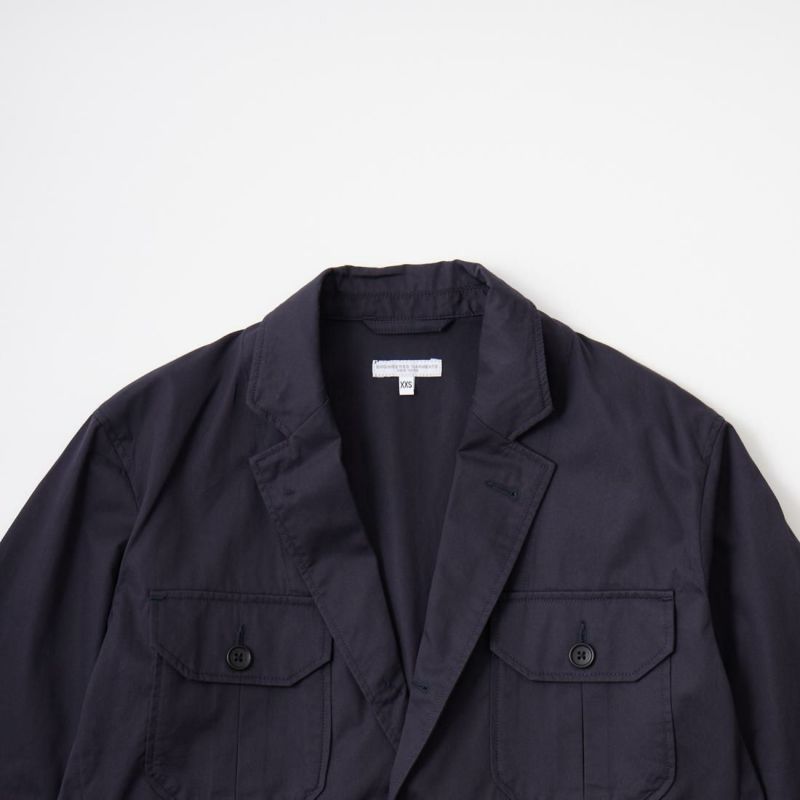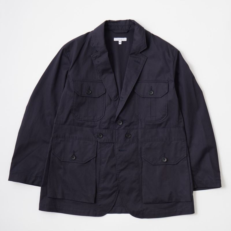 ENGINEERED GARMENTS (エンジニアド ガーメンツ)のFOLK JACKET HIGH COUNT TWILL。春夏コレクション定番のハイカウントツイルを使用したフォークジャケット。襟にはチンストラップを装備。フロントに4つのフラップポケット。ウエストベルトが特徴的なデザイン。シーズンテーマのシティーサファリを体現したようなカントリーディテール。身幅にゆとりのあるリラックスシルエット。素材は肌触りの良いハイカウントツイル。高密度で光沢のある素材。
