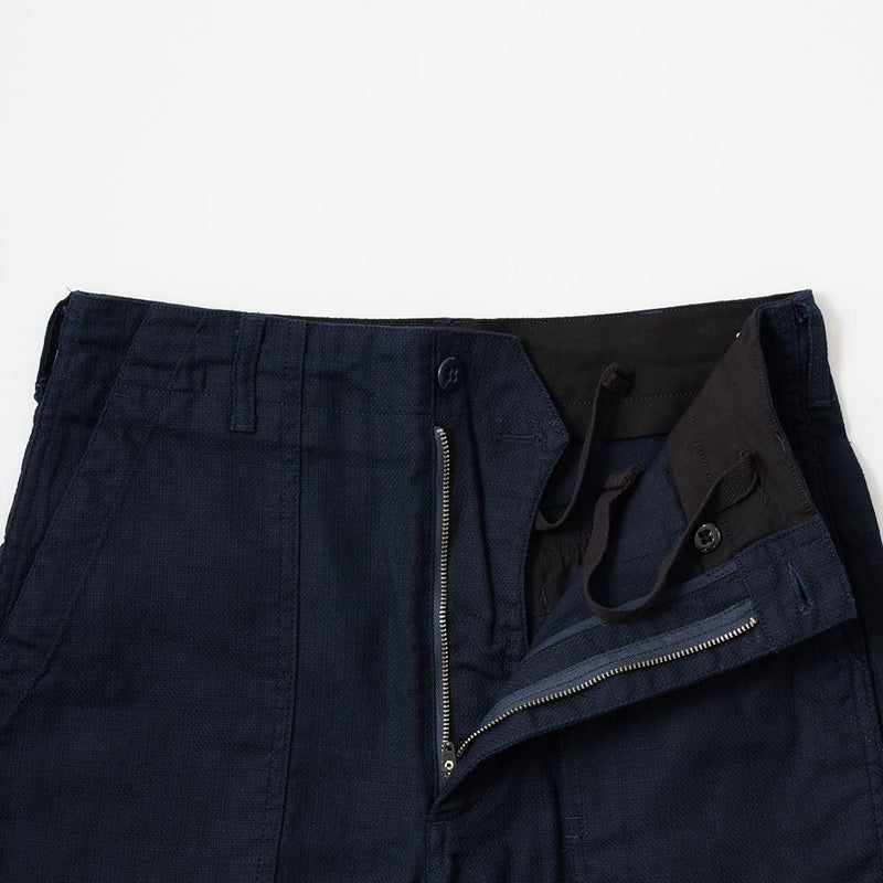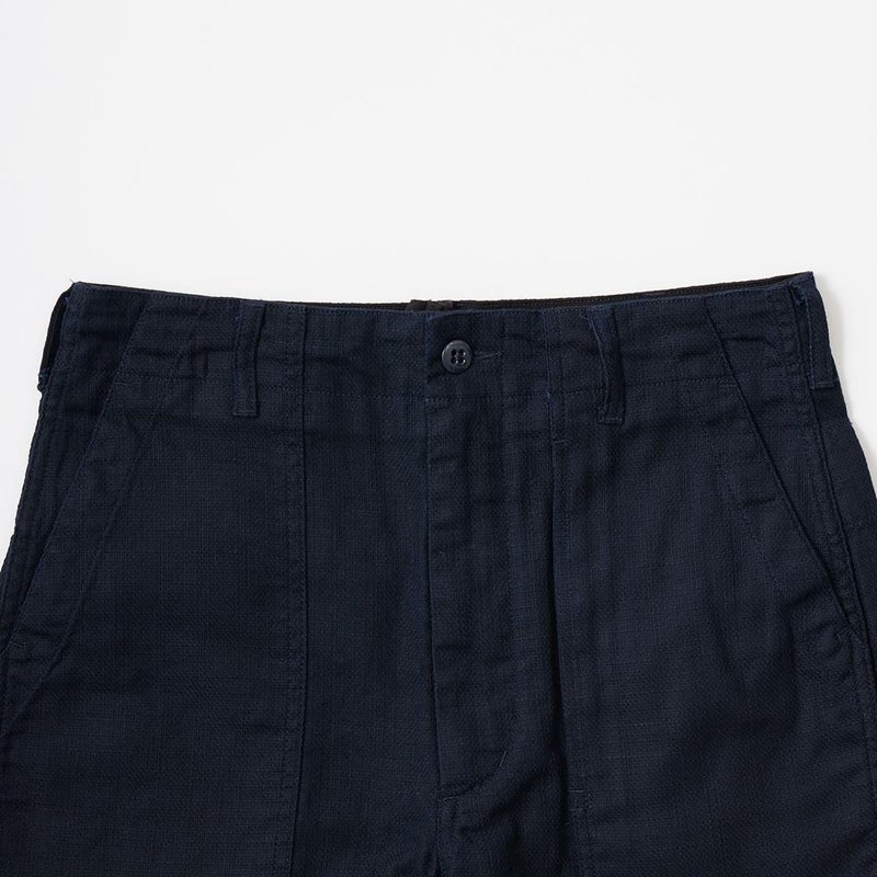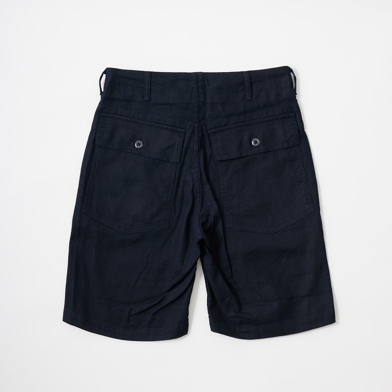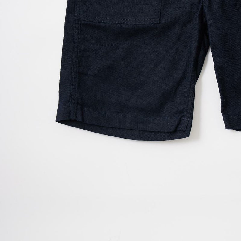 ENGINEERED GARMENTS(エンジニアドガーメンツ)のFATIGUE SHORT CL JAVA CLOTH。春夏シーズンの定番アイテムのファティーグショーツ。膝上丈で程よくゆとりのある腿周りのショーツ。フロントの大きなパッチポケットが特徴的なディテール。左フロントポケットの内側にジップポケットも装備。素材は凹凸感とドライな風合いが特徴のジャバクロス。