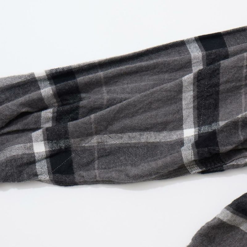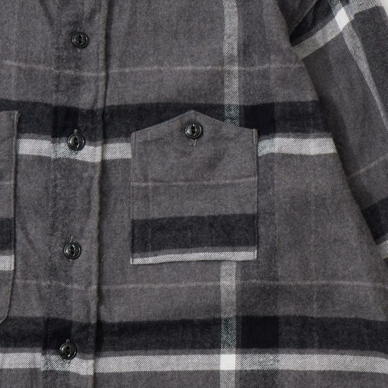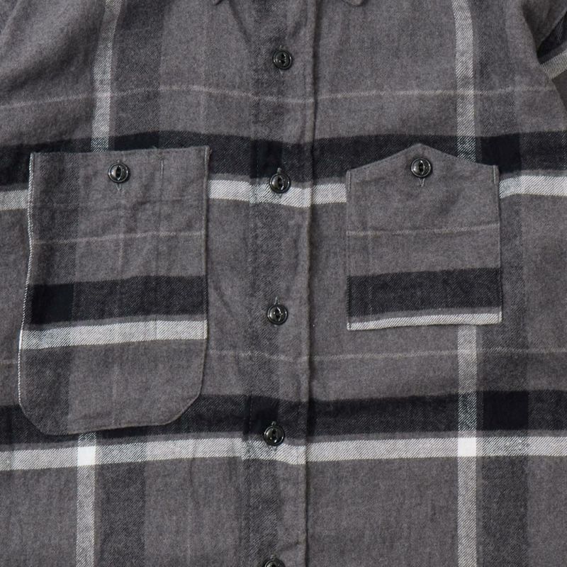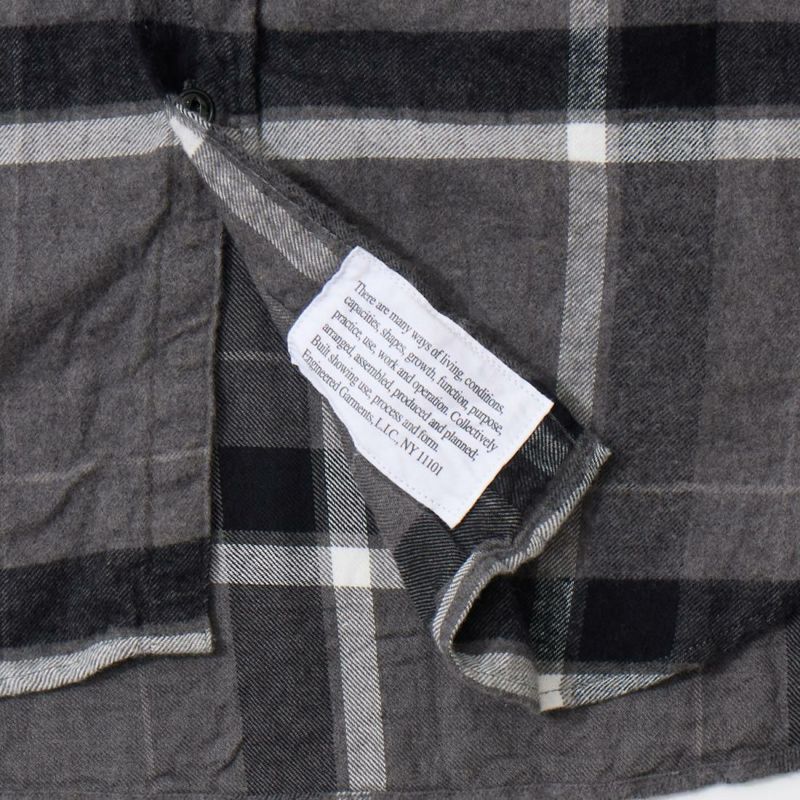 ENGINEERED GARMENTS(エンジニアド ガーメンツ)のWORK SHIRT COTTON BRUSHED BIG PLAID。肩や袖、脇はトリプルニードルで縫製され、肘の当て布やサイドのガゼット、カンヌキステッチなどワークなディテールがふんだんに盛り込まれている定番シャツ。左右非対称の胸ポケット。素材は温かみのあるコットンフランネル。
