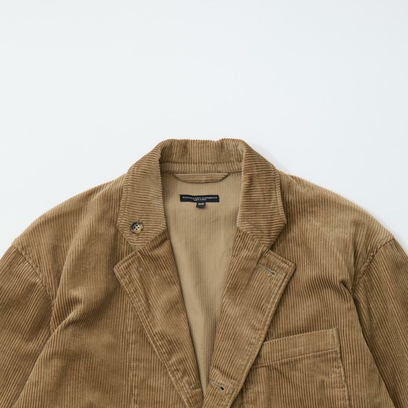 ENGINEERED GARMENTS(エンジニアド ガーメンツ)のLOITER JACKET 8W CORDUROY。8ウェールのコーデュロイ素材を使用したロイタージャケット。襟にはストラップが付けられ、ラペルを寝かせればテーラード、立てればマオカラーにできる仕様のジャケット。フロントはパッチポケットが3つ付き、バックはノーベントでウエストにシルエット調整のできるアジャスターボタンを装備。ジャケットとカーディガンの中間のような仕上がり。