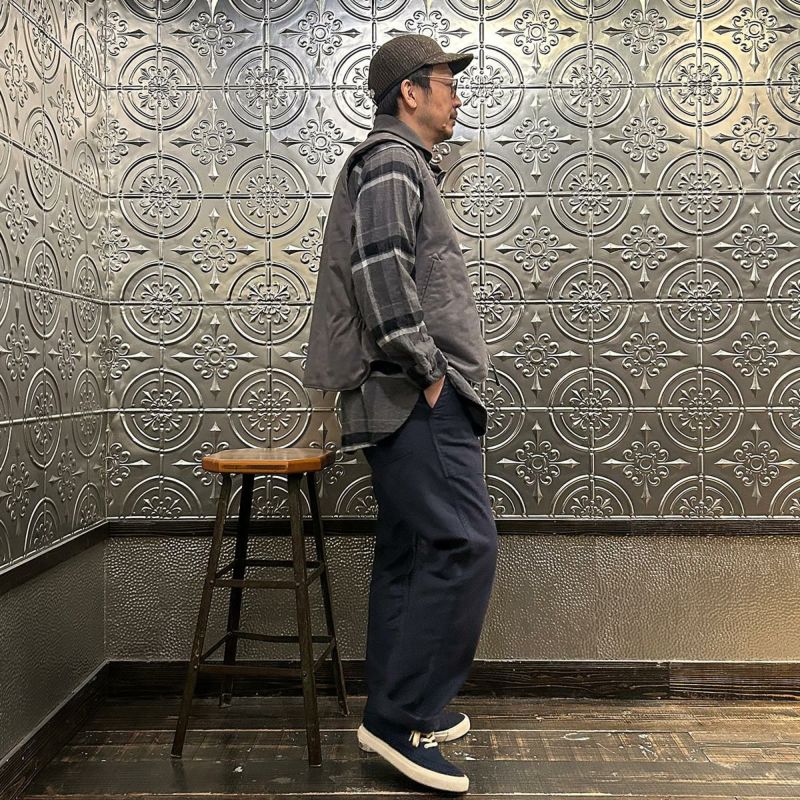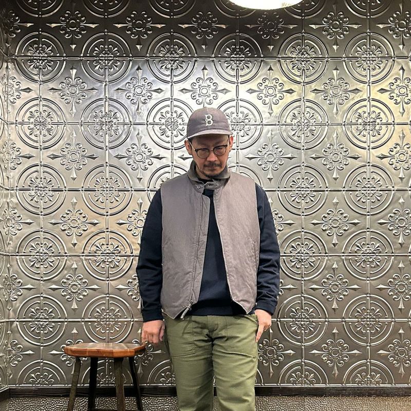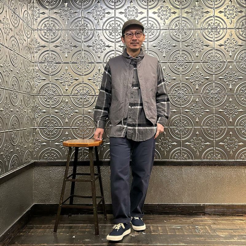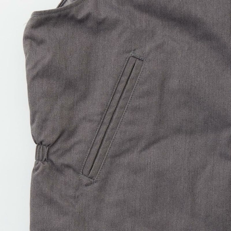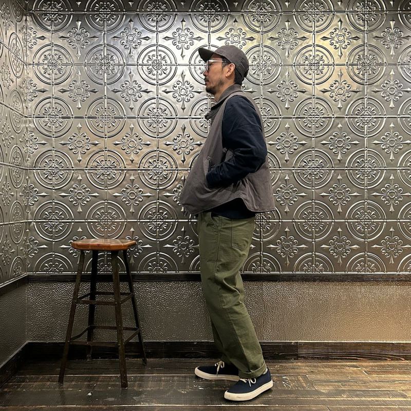 ENGINEERED GARMENTS(エンジニアドガーメンツ)のLL VEST PC TANKER TWILL。コットンポリエステルのツイル素材を使用したエルエルベスト。首元はリブのショールカラーでチンストラップも装備。中綿入りのパデッド仕様でボリュームは感じさせないものの保温性も高いベスト。アウター、インナーと使い勝手の良い1着。