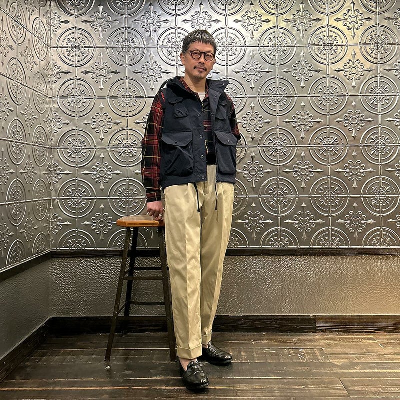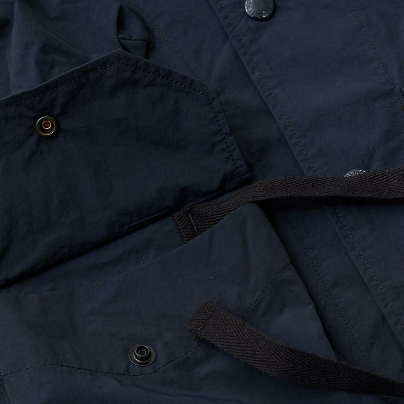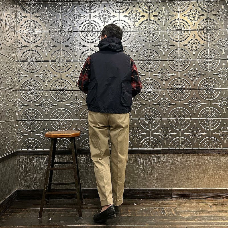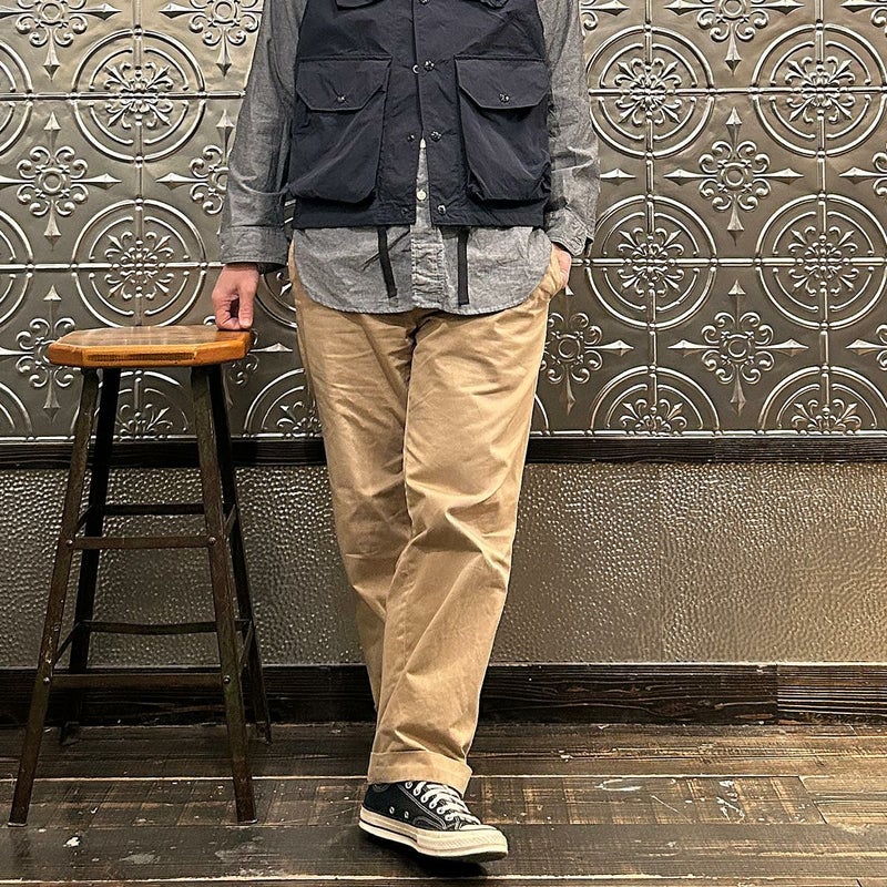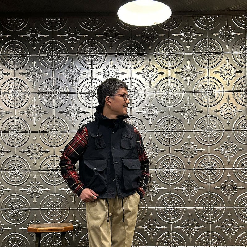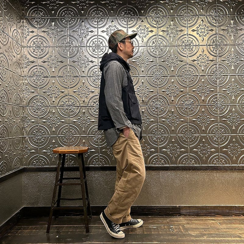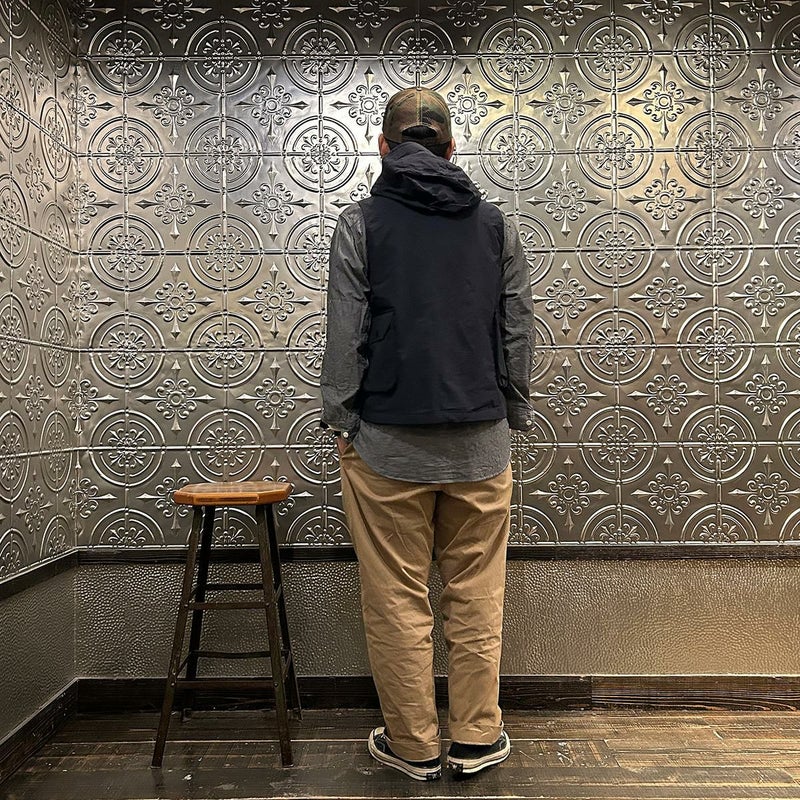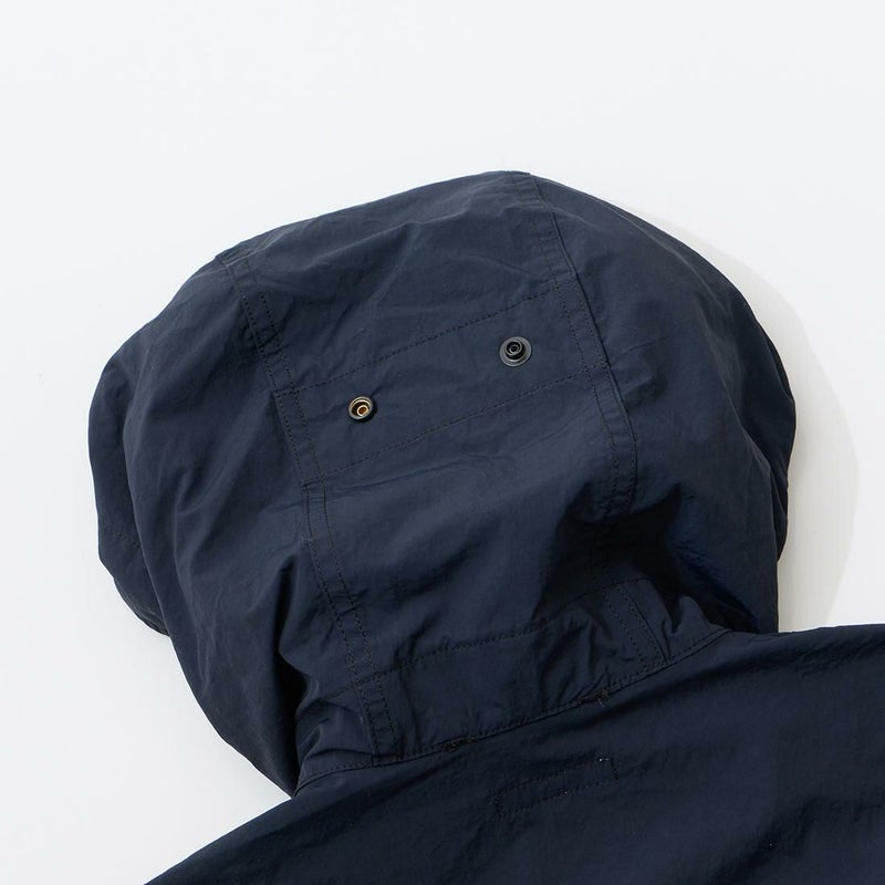 ENGINEERED GARMENTS(エンジニアドガーメンツ)のFIELD VEST POLYESTER TASLAN。マウンテンパーカの袖を無くしたようなデザインのフィールドベスト。フロントはスナップ仕様。胸、腰に左右ポケットが1つづつ。ドローコード入りのフードを装備。背面にも左右にポケットを装備。裾部分にもドローコードが装備されておりシルエットアレンジが可能。素材はタスラン加工されたポリエステル糸を採用した生地。ソフトな肌触りとシワになりにくさを兼ね備えた素材です。