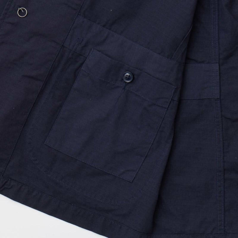 ENGINEERED GARMENTS (エンジニアド ガーメンツ)のBEDFORD JACKET COTON RIPSTOP。エンジニアド ガーメンツを代表するジャケットとなるベッドフォードジャケット。フロントには4つのパッチポケットが配置され、襟はピークドラペル、バック側はノーベントのカジュアルなデザイン。また、フロントボタンはチェンジボタン仕様でワークテイストを織り込んだ作りになっています。内側にもポケットが配置されています。素材にはコットン100%のリップストップ素材を採用。経年変化も楽しんで頂ける1着。