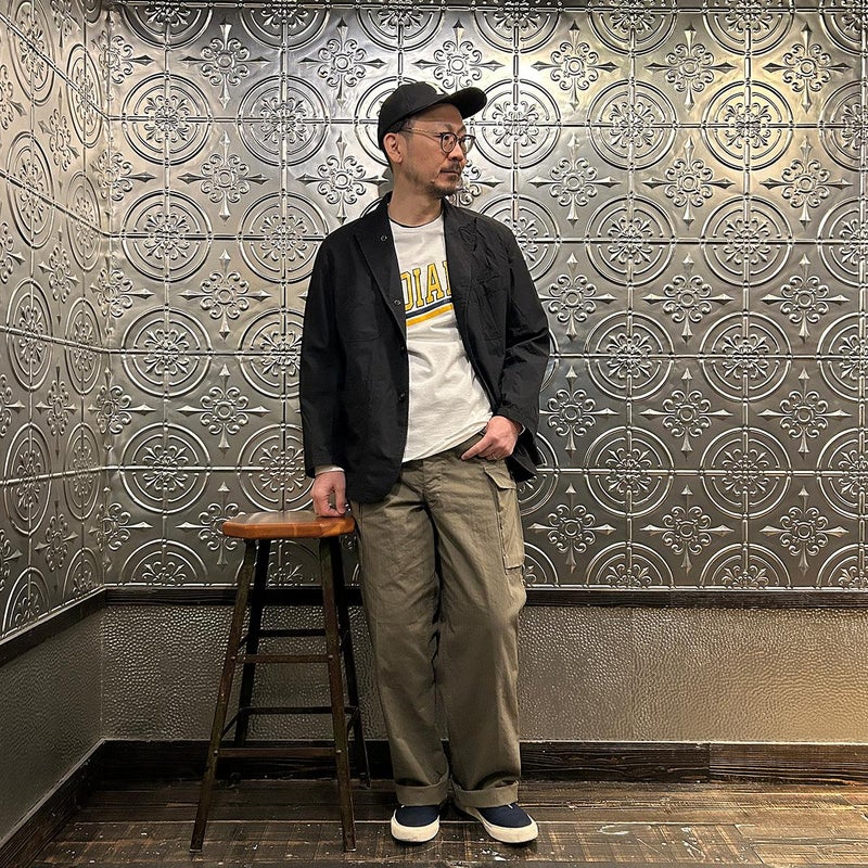 ENGINEERED GARMENTS (エンジニアド ガーメンツ)のBEDFORD JACKET LT WEIGHT NYCO POPLIN。エンジニアドガーメンツを代表するベッドフォードジャケット。フロントには4つのパッチポケットが配置され、襟はピークドラペル、ノーベントのカジュアルなデザイン。また、フロントボタンはチェンジボタン仕様でワークテイストな仕様。内側にもポケットが配置。素材はコットンとナイロンの混紡素材。軽量で耐久性が高い機能性素材。