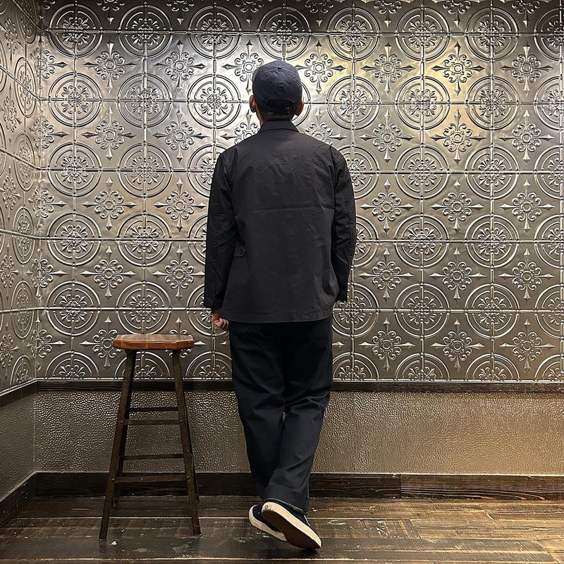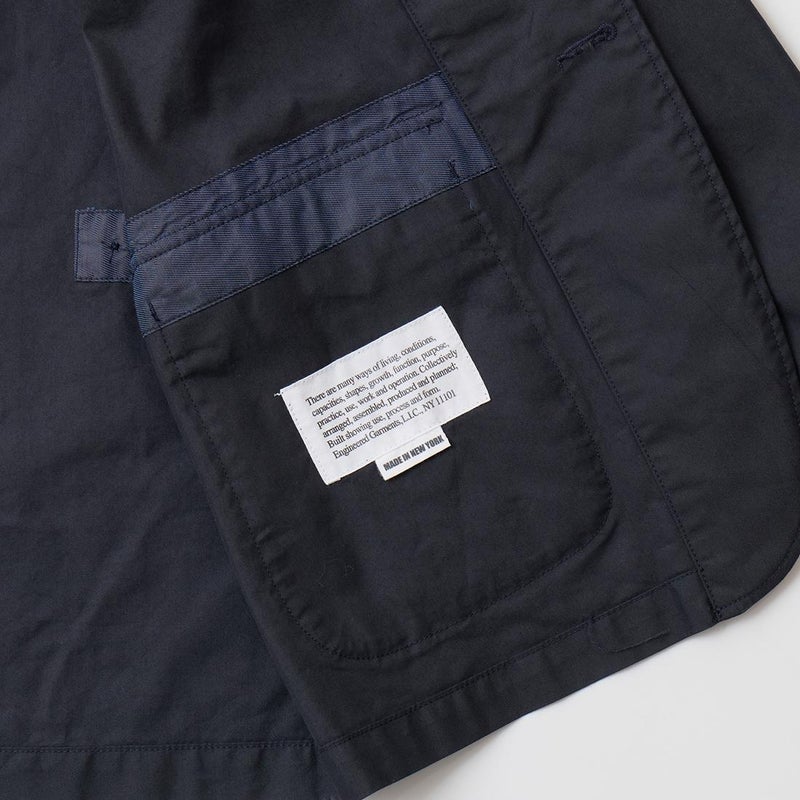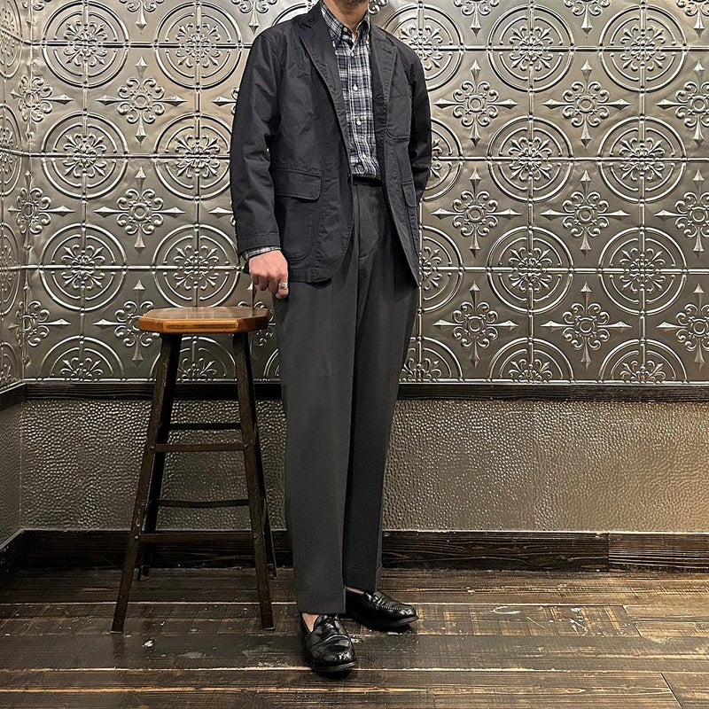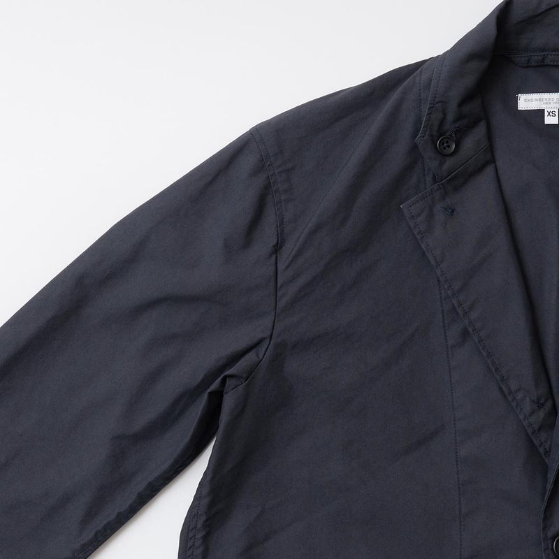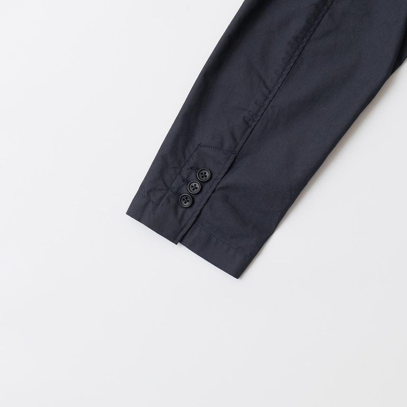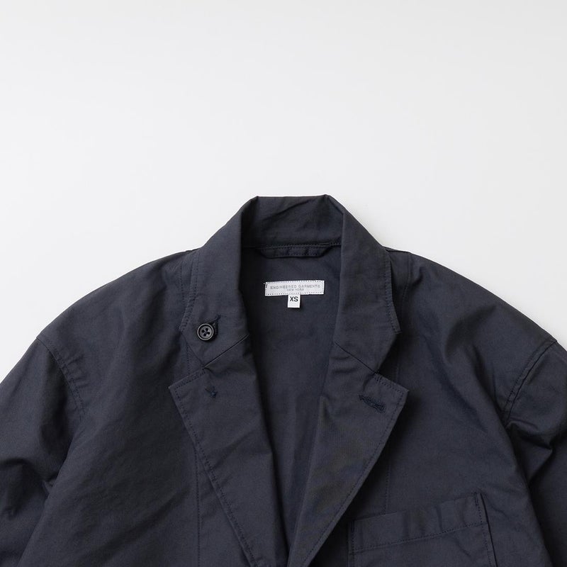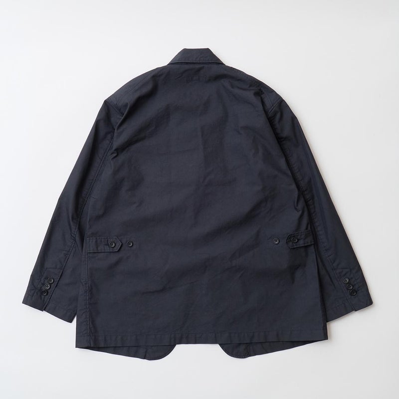 ENGINEERED GARMENTS(エンジニアド ガーメンツ)のLOITER JACKET LT WEIGHT NYCO TWILL。ナイロン/コットンのツイル素材を使用したロイタージャケット。ナイロンコットンのツイル素材は軽量で耐久性の高い素材。襟にはストラップが付けられ、ラペルを寝かせればテーラード、立てればマオカラーにできる仕様のジャケット。フロントはパッチポケットが3つ付き、バックはノーベントでウエストにシルエット調整のできるアジャスターボタンを装備。ジャケットとカーディガンの中間のような仕上がり。