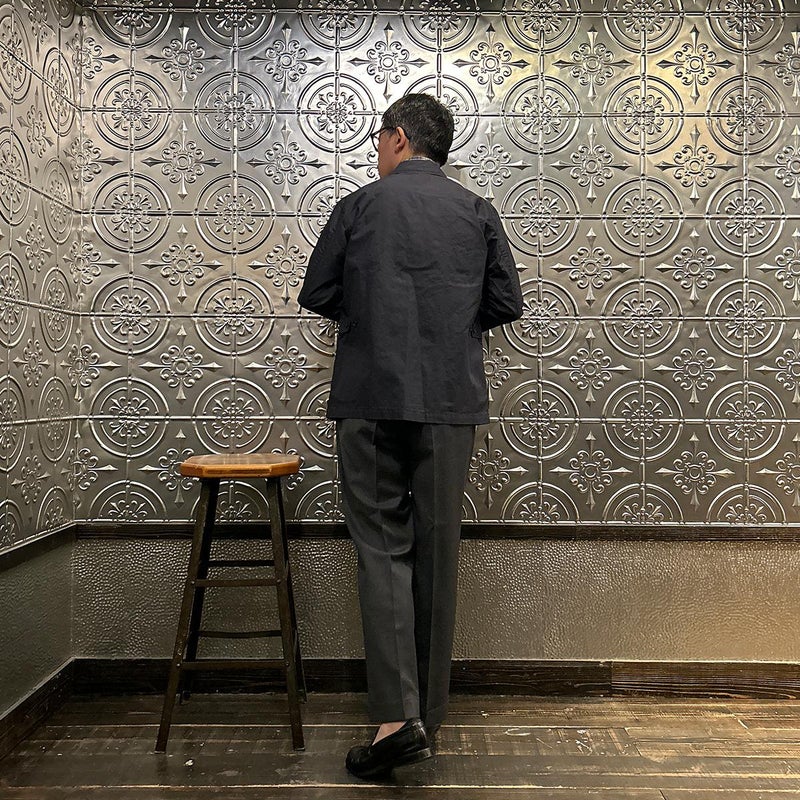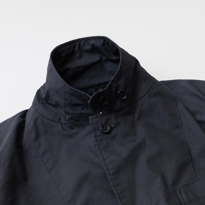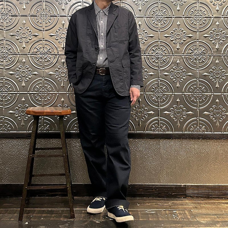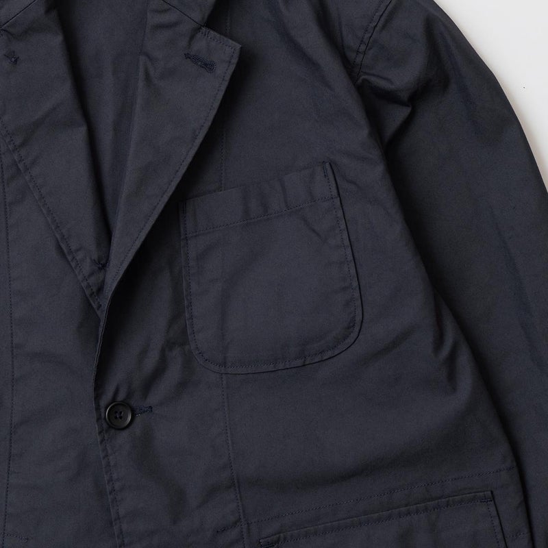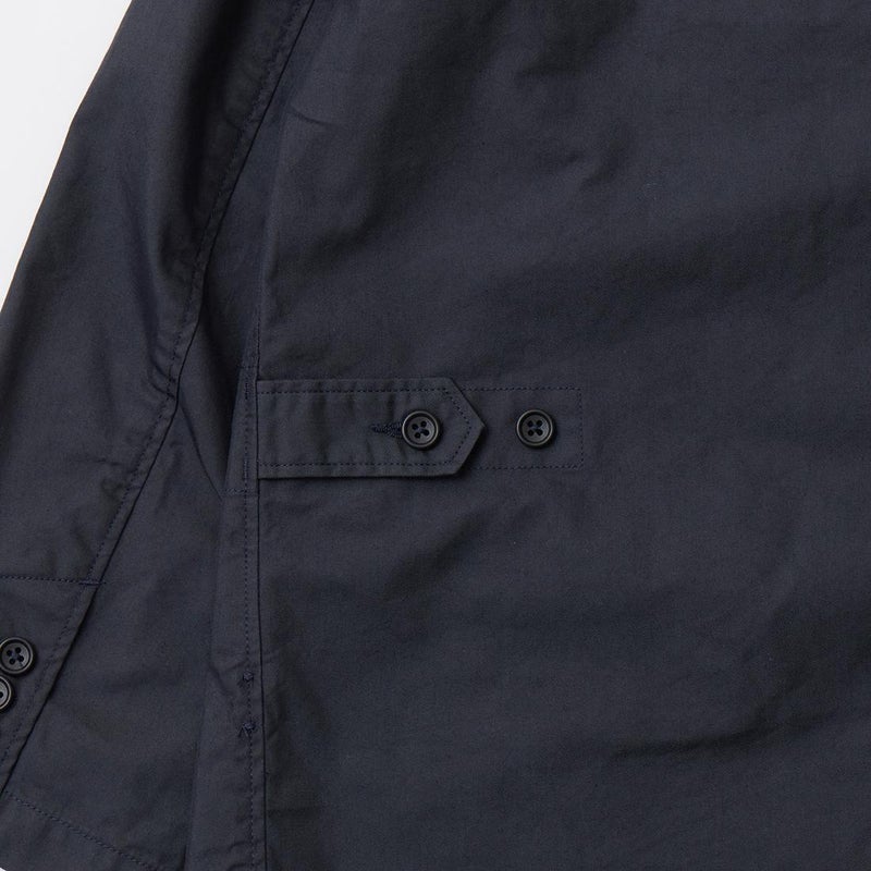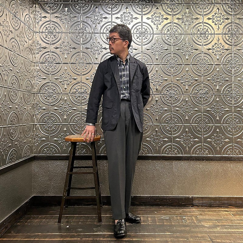 ENGINEERED GARMENTS(エンジニアド ガーメンツ)のLOITER JACKET LT WEIGHT NYCO TWILL。ナイロン/コットンのツイル素材を使用したロイタージャケット。ナイロンコットンのツイル素材は軽量で耐久性の高い素材。襟にはストラップが付けられ、ラペルを寝かせればテーラード、立てればマオカラーにできる仕様のジャケット。フロントはパッチポケットが3つ付き、バックはノーベントでウエストにシルエット調整のできるアジャスターボタンを装備。ジャケットとカーディガンの中間のような仕上がり。