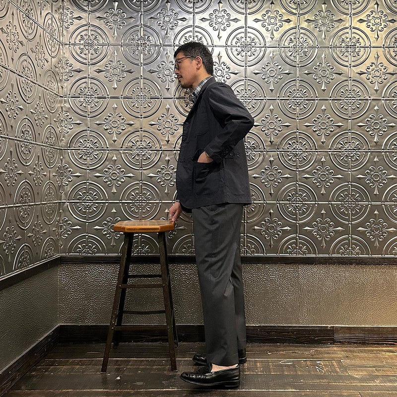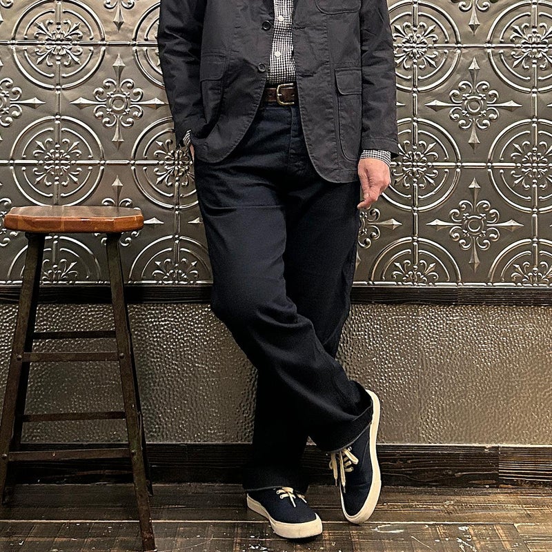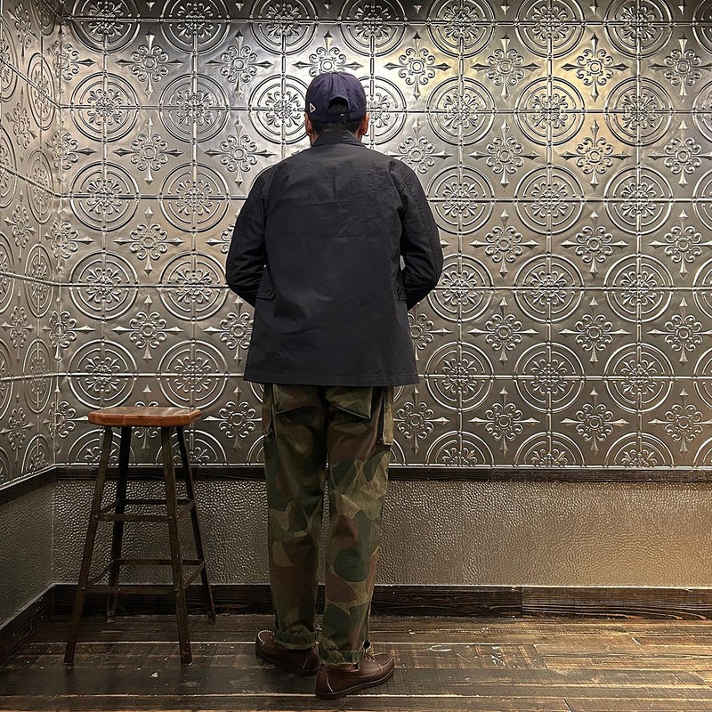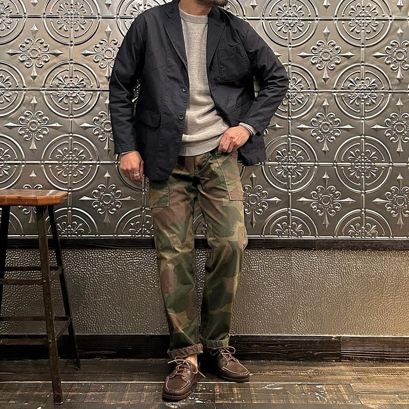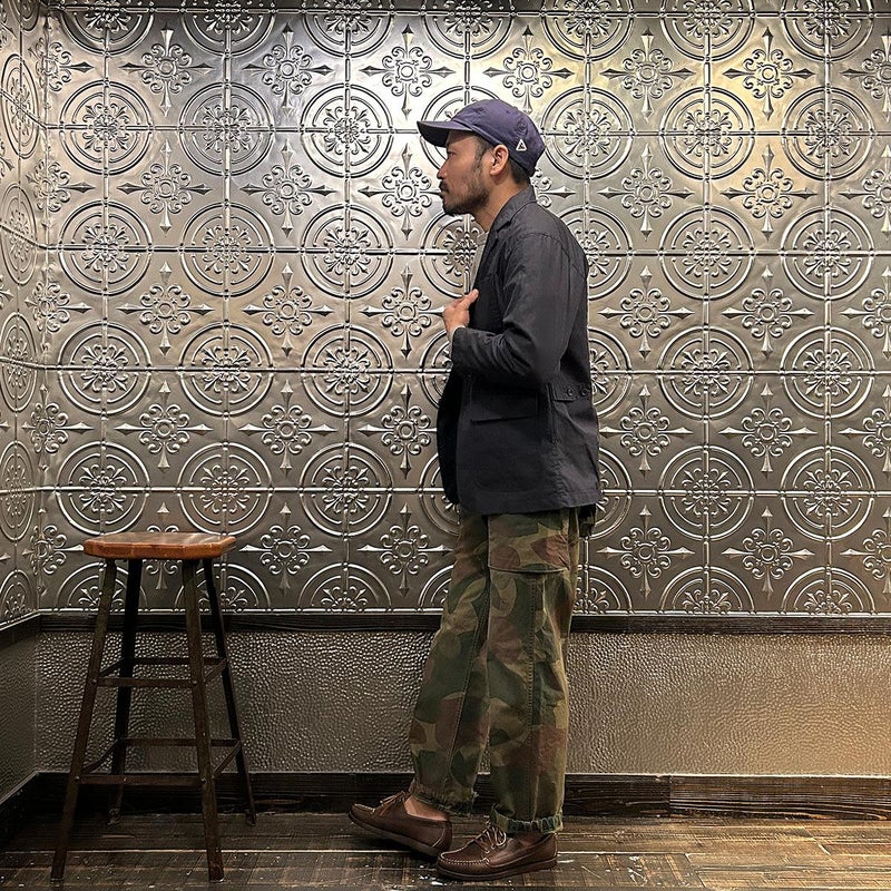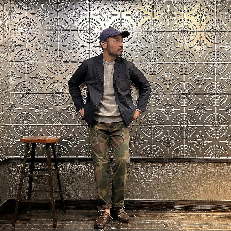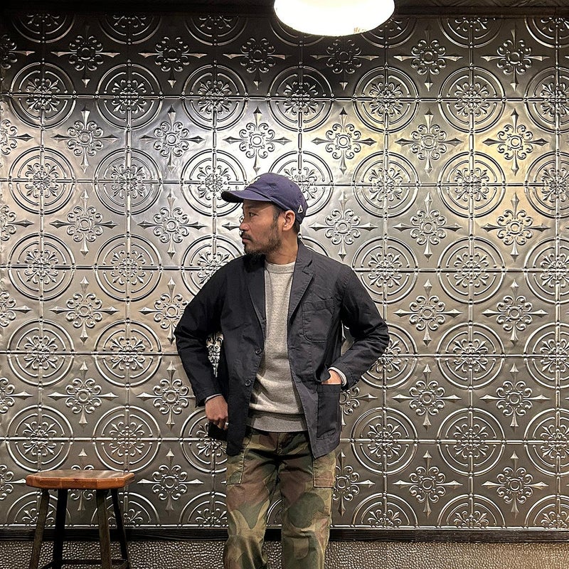 ENGINEERED GARMENTS(エンジニアド ガーメンツ)のLOITER JACKET LT WEIGHT NYCO TWILL。ナイロン/コットンのツイル素材を使用したロイタージャケット。ナイロンコットンのツイル素材は軽量で耐久性の高い素材。襟にはストラップが付けられ、ラペルを寝かせればテーラード、立てればマオカラーにできる仕様のジャケット。フロントはパッチポケットが3つ付き、バックはノーベントでウエストにシルエット調整のできるアジャスターボタンを装備。ジャケットとカーディガンの中間のような仕上がり。