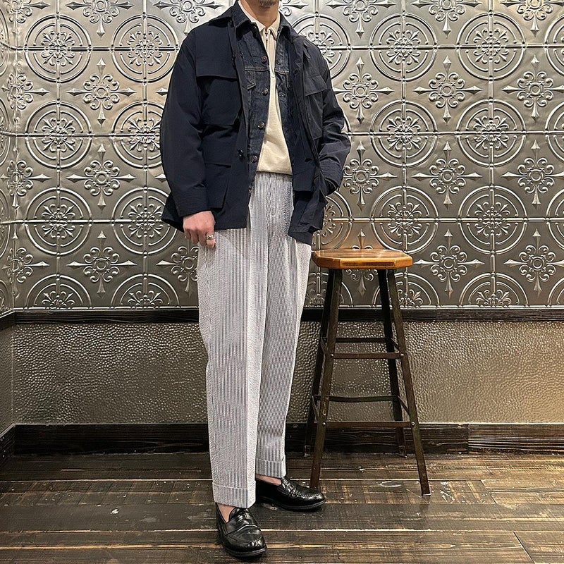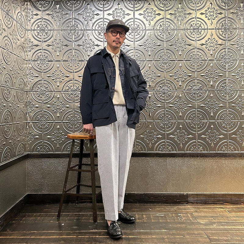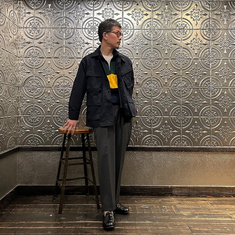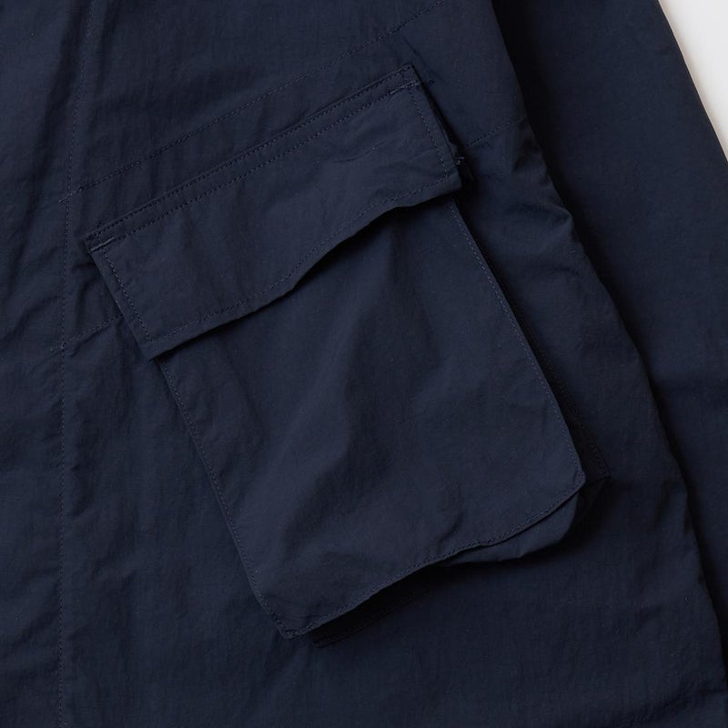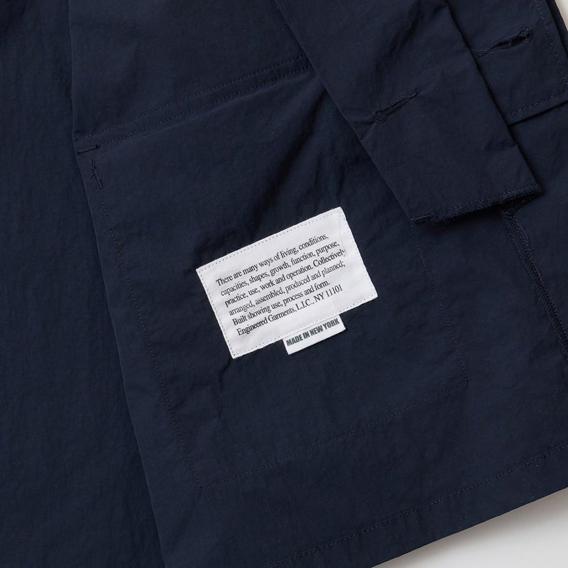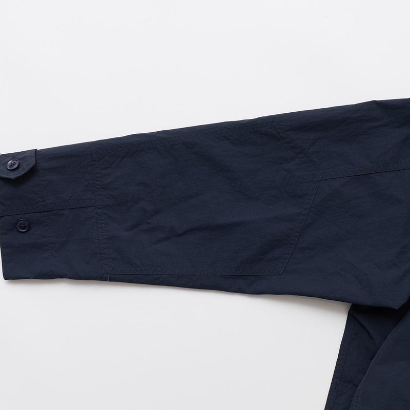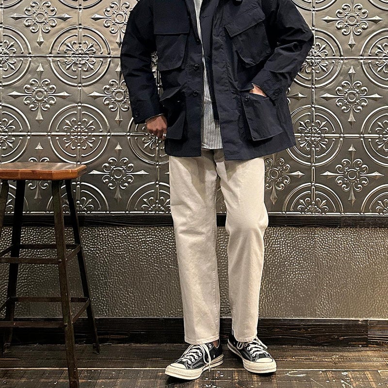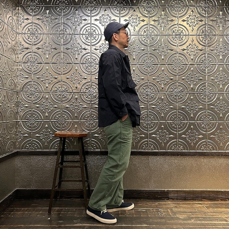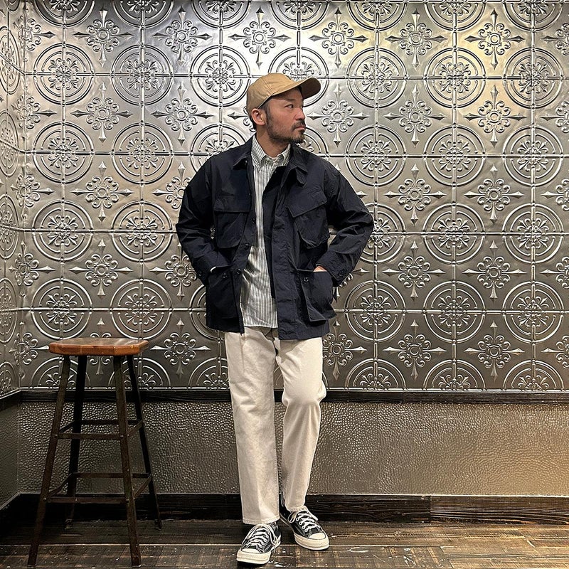 ENGINEERED GARMENTS(エンジニアド ガーメンツ)のBDU JACKET POLYESTER TASLAN。アメリカ軍のB.D.Uジャケットがデザインソース。フロントの立体感のある4つのマチ付きフラップポケット。左胸ポケットは手を入れやすいように角度をつけて配置。バックサイドにはボタン式のアジャスターを装備。シルエットアレンジが可能。袖には同素材の肘あても付いています。素材はタスラン加工されたポリエステル糸を採用した生地。ソフトな肌触りとシワになりにくさを兼ね備えた素材。