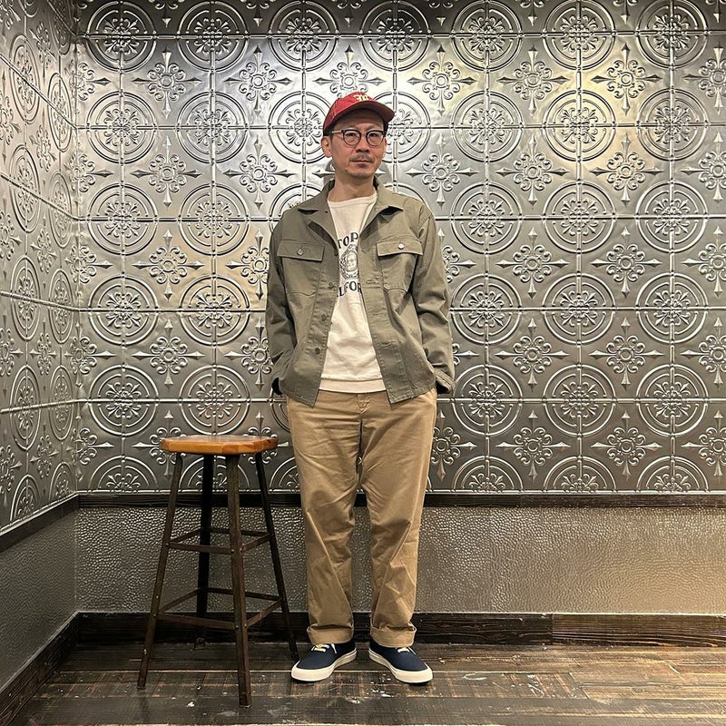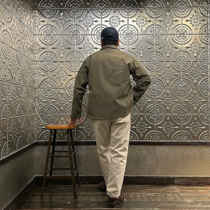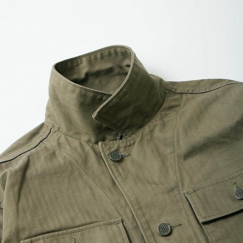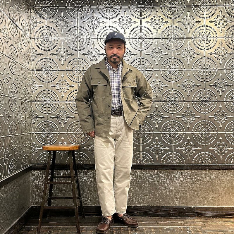 ディテールとしてはアメリカ軍のフィールドジャケット「M-43 」「M-47」辺りのHBT(ヘリンボンツイル)ジャケットをベースに各所をモディファイ。「シンプルで流行り廃りなくずっと着続けられるモノ」というコンセプトで別注しました。