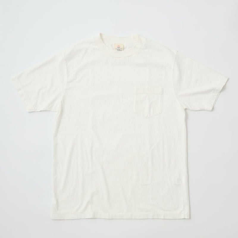 アメリカ発「FELCO(フェルコ)」のS/S HI CREW TEE USA COTTON。クラシックサーフをテーマに掲げるコレクションラインからのリリース。太めのネックリブで首元の詰まった、ハイクルーが特徴的なポケットTです。やや短めの着丈、身幅の広めのボックスシルエットになっています。サラッとした肌触りのテキサスコットンを使用しており、薄手で通気性も良くインナーとしても最適です。