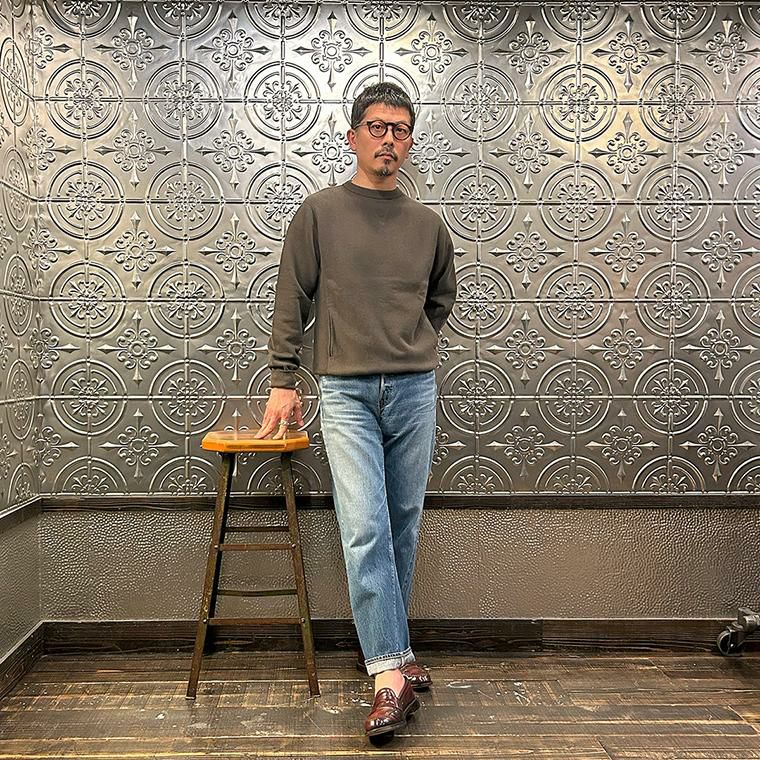 FELCO(フェルコ)のヴィンテージ感たっぷりのクルーネックスウェットのデリバリーです。両Vガゼットの襟元や長めのリブがヴィンテージスウェットを彷彿させる1着です。襟元に特徴的なデザインの入るアイテムなのでインナーとして着用したときもスタイリングのワンポイントになってくれます。しっかりとした生地感なので気兼ねなく着用出来るのでデイリーに使っていただける1着です。サイズは176cm74kg程度でXLサイズがインナーでもアウターでも使える丁度良いサイズになります。