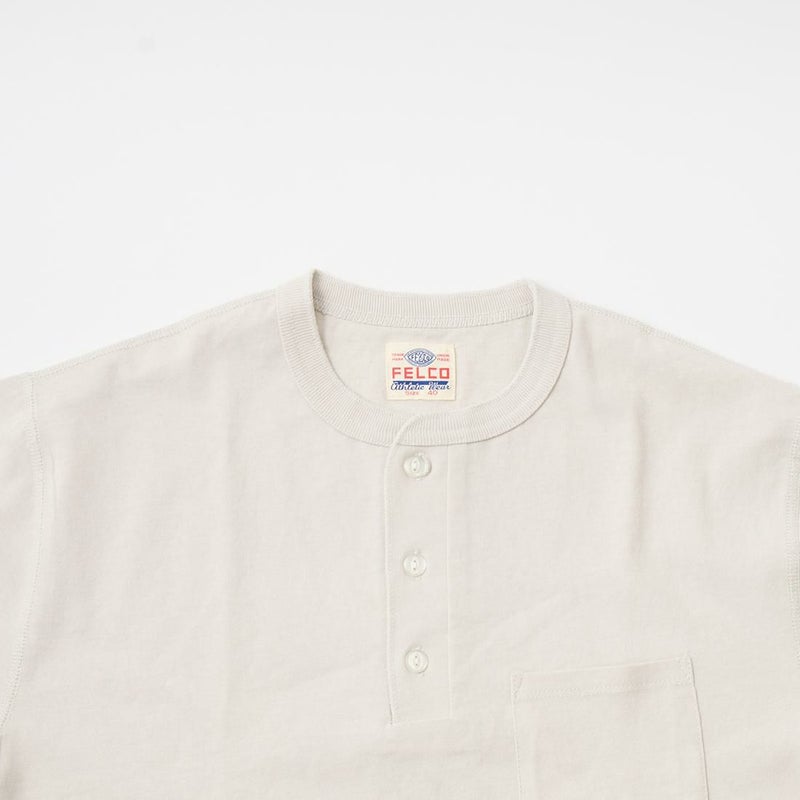 HEALTH KNIT(ヘルスニット)とFELCO(フェルコ)のダブルネームとなるS/S HENLEY NECK POCKET-T U.S.COTTON OPEN END JERSEY。猫目ボタンを使用したヘンリーネックのポケットTシャツ。風合いの良いU.Sコットンを特注で編み立てた生地を使用。吸水性と速乾性に優れ、抗菌、防臭効果も備えた優れもの。左裾に付けられたFELCO(フェルコ)のワッペンがちょっとしたアクセントになっています。
