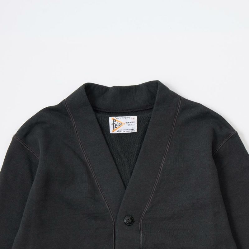 FELCO (フェルコ) 12oz TERRY V NECK BUTTON CARDIGAN - BLACK