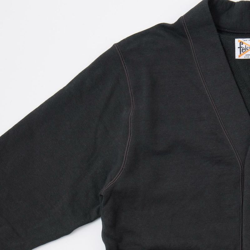 5. FELCO (フェルコ) 12oz TERRY V NECK BUTTON CARDIGAN - BLACK